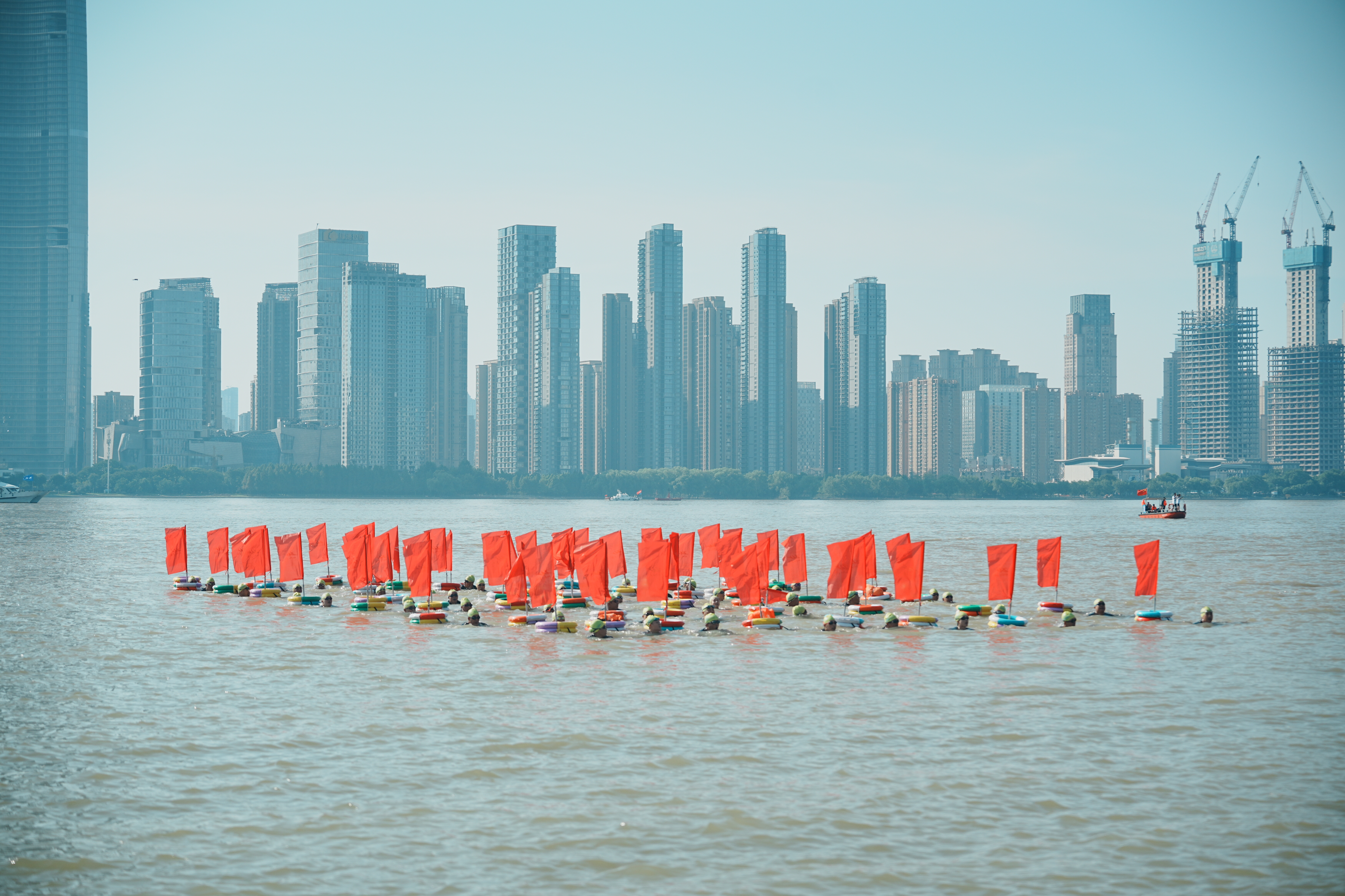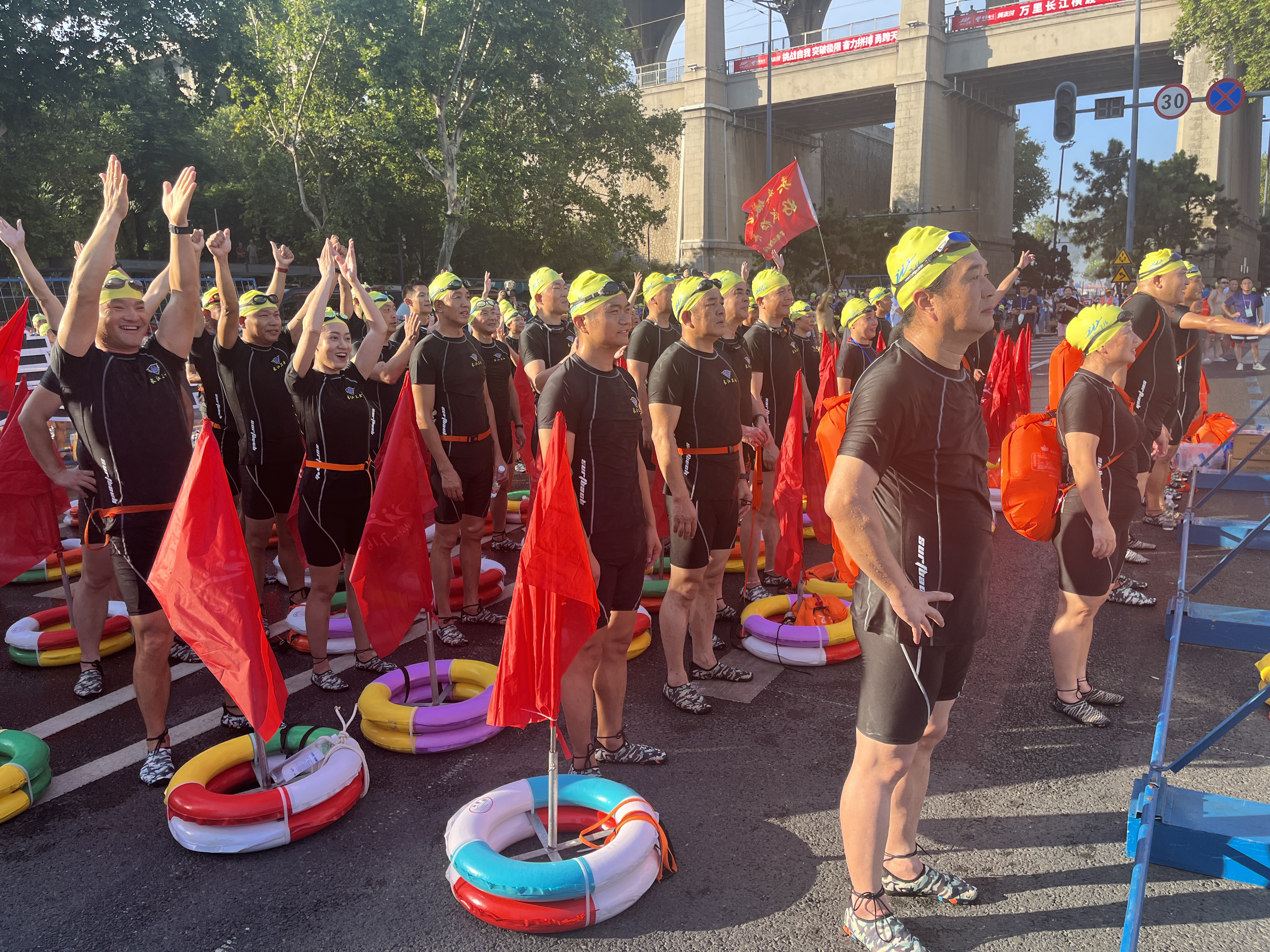 “横渡长江,不仅考验每个人的体力和耐力,更是对每支队伍团队协作能力的考验,我们队员大多是退役军人,在这方面有更大的优势。”队员高飞说。高飞是一名马拉松爱好者,在2012年退役后才学会游泳。据介绍,方队横渡长江并不是比拼速度,更多是考验每支队伍的配合程度、整齐程度,6000米的横渡距离,需要整支队伍在50分钟左右的时间抵达终点。