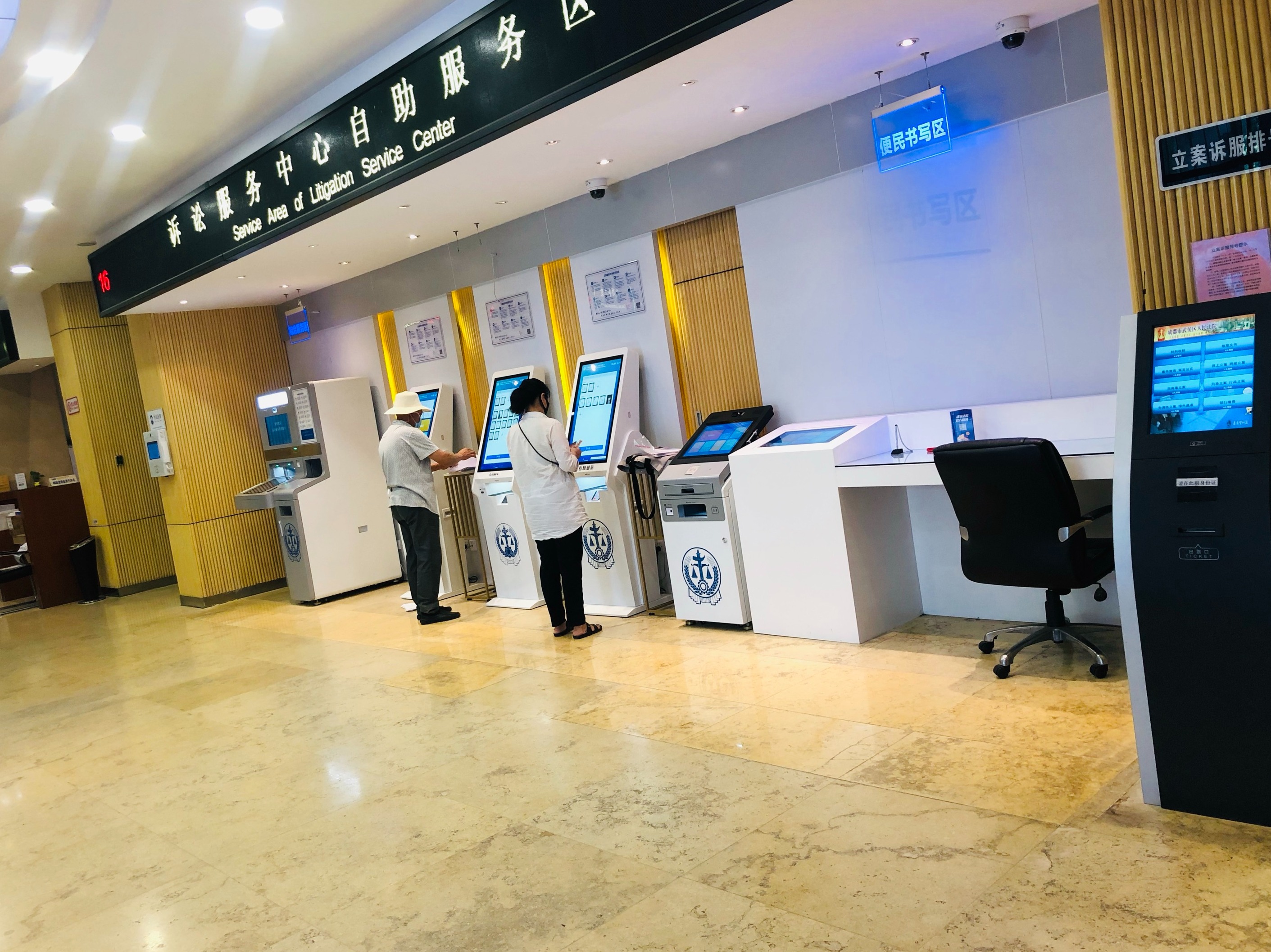 诉讼服务中心自助服务区内,市民正在使用百智诚远开发的产品。