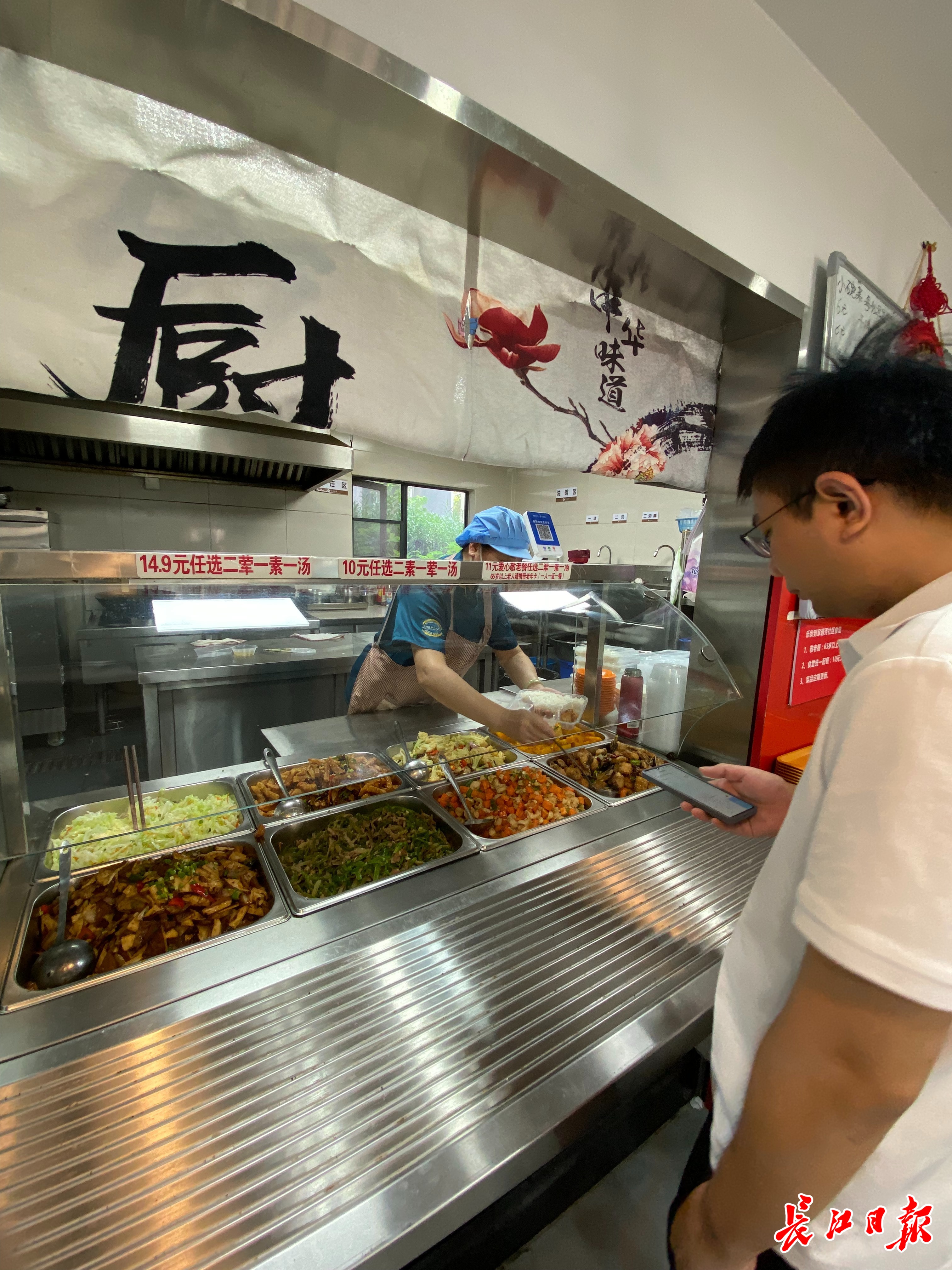 “我昨晚也在这吃的饭,这里菜式很家常,少油少盐,干净卫生,味道也不错。天气太热了,每天就近吃饭,可算是解决了我们生活上的大难题。”他说。