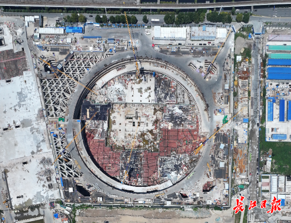 8月8日下午,记者再次来到武汉周大福金融中心项目工地,现场热火朝天,工人们挥汗如雨。国内最大的超深圆环内支撑基坑预计于2025年6月实现“正负零”,接下来将进行主体结构工程施工,加速攀升。
