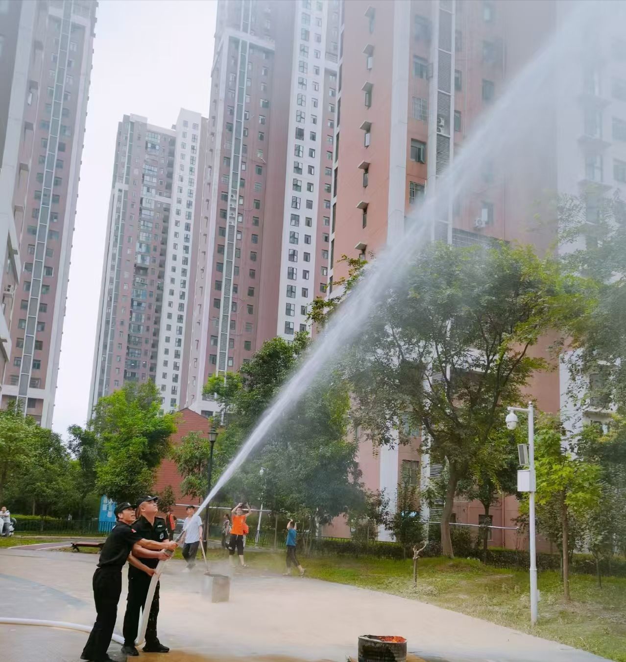 小区应急服务站成员参加灭火演练。通讯员刘娜 摄