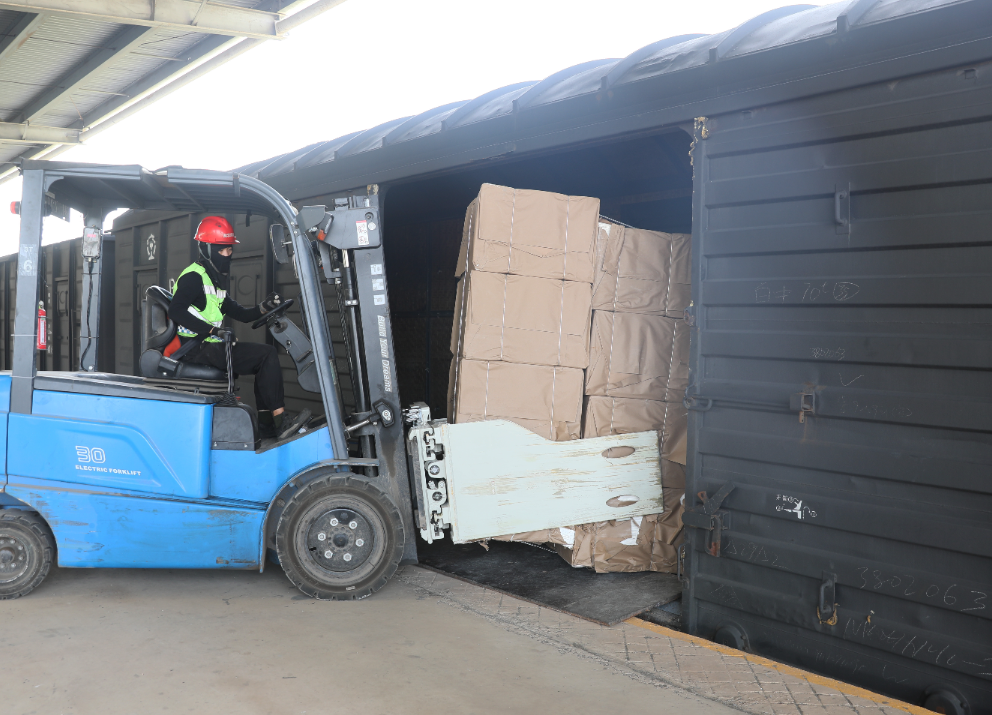 进口纸浆在大花岭站装运。通讯员周忠元 摄
