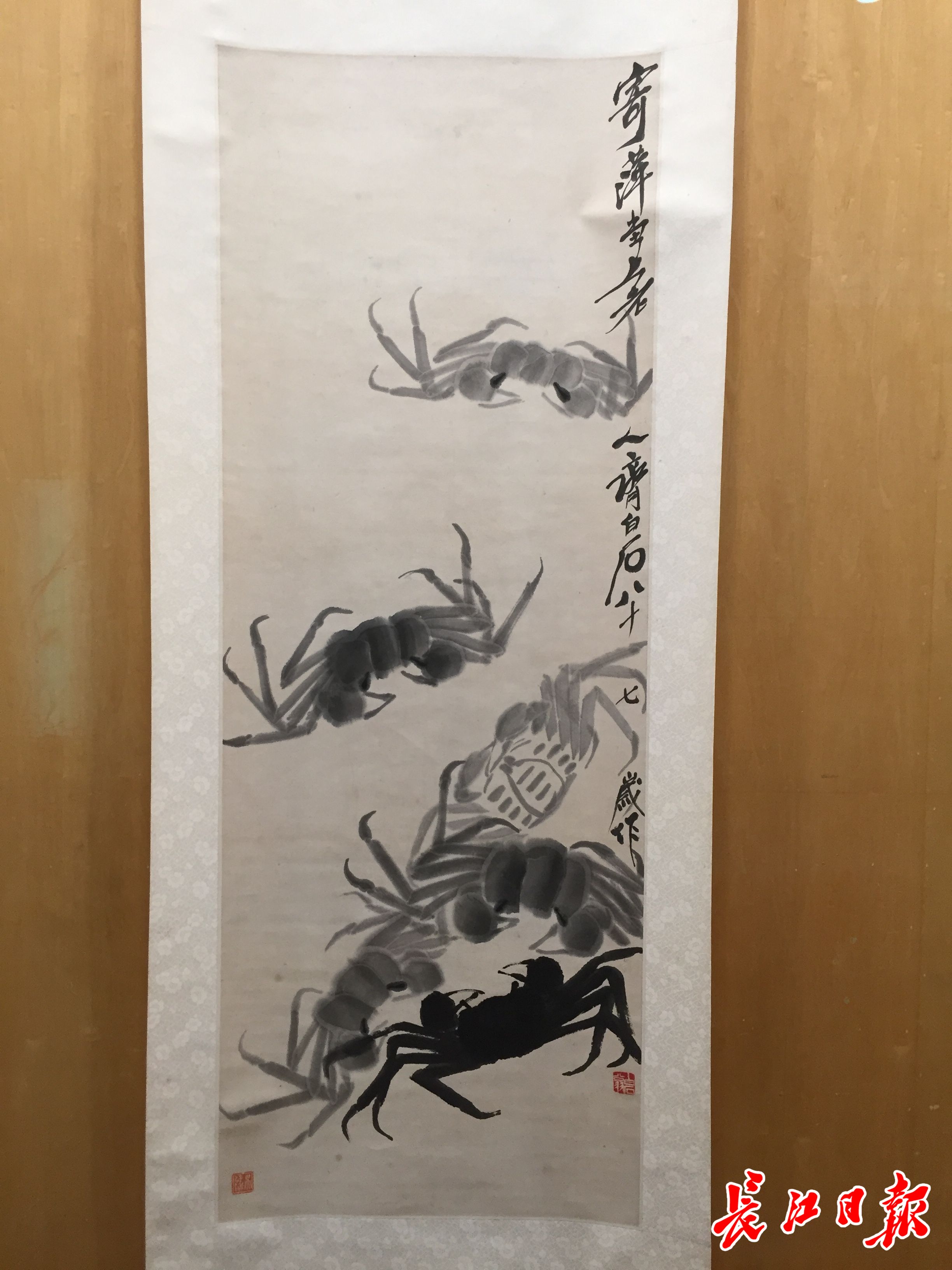 齐白石《水墨蟹》立轴。长江日报记者万建辉 摄