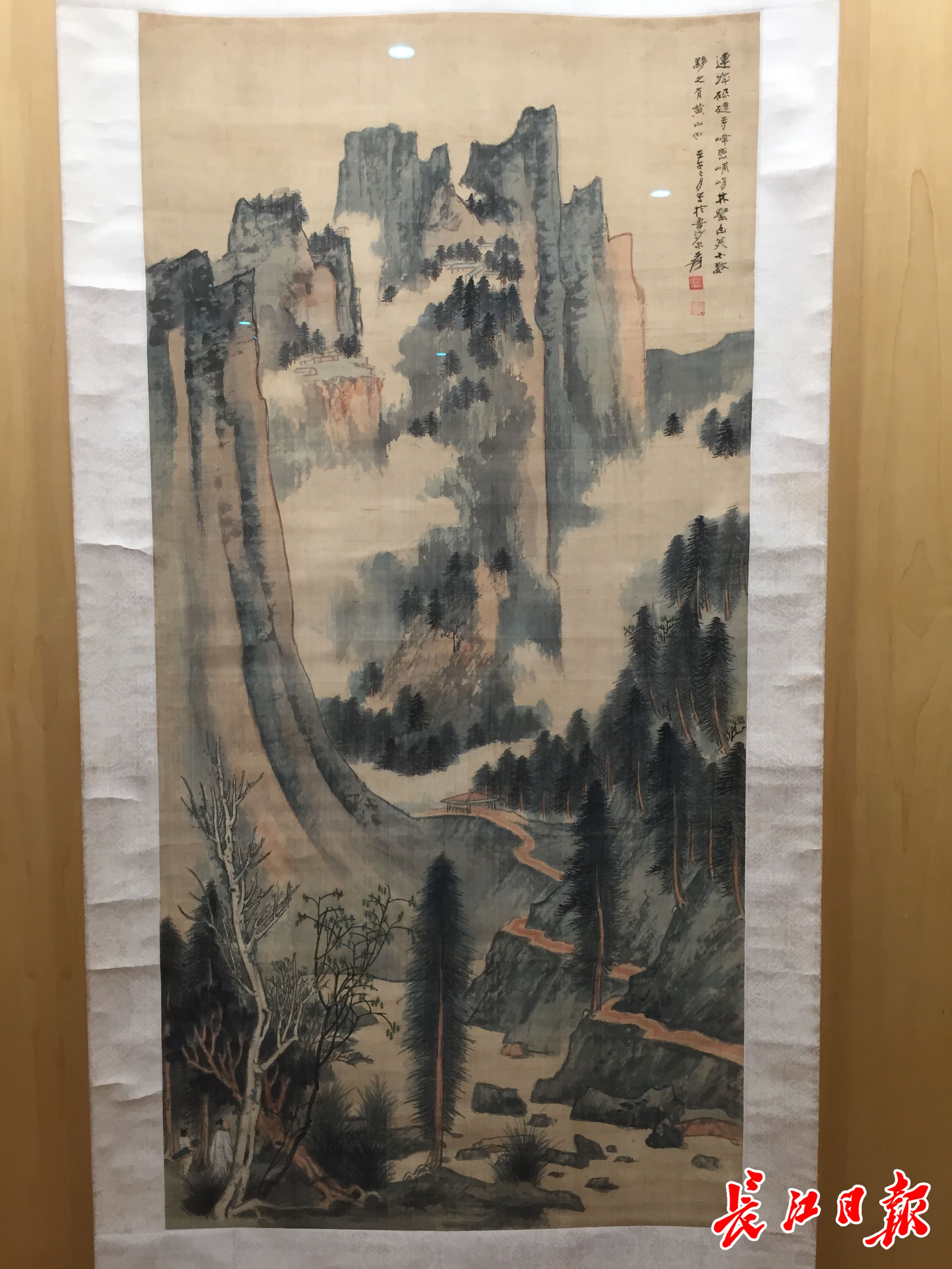 张大千《设色山水中堂》轴。长江日报记者万建辉 摄