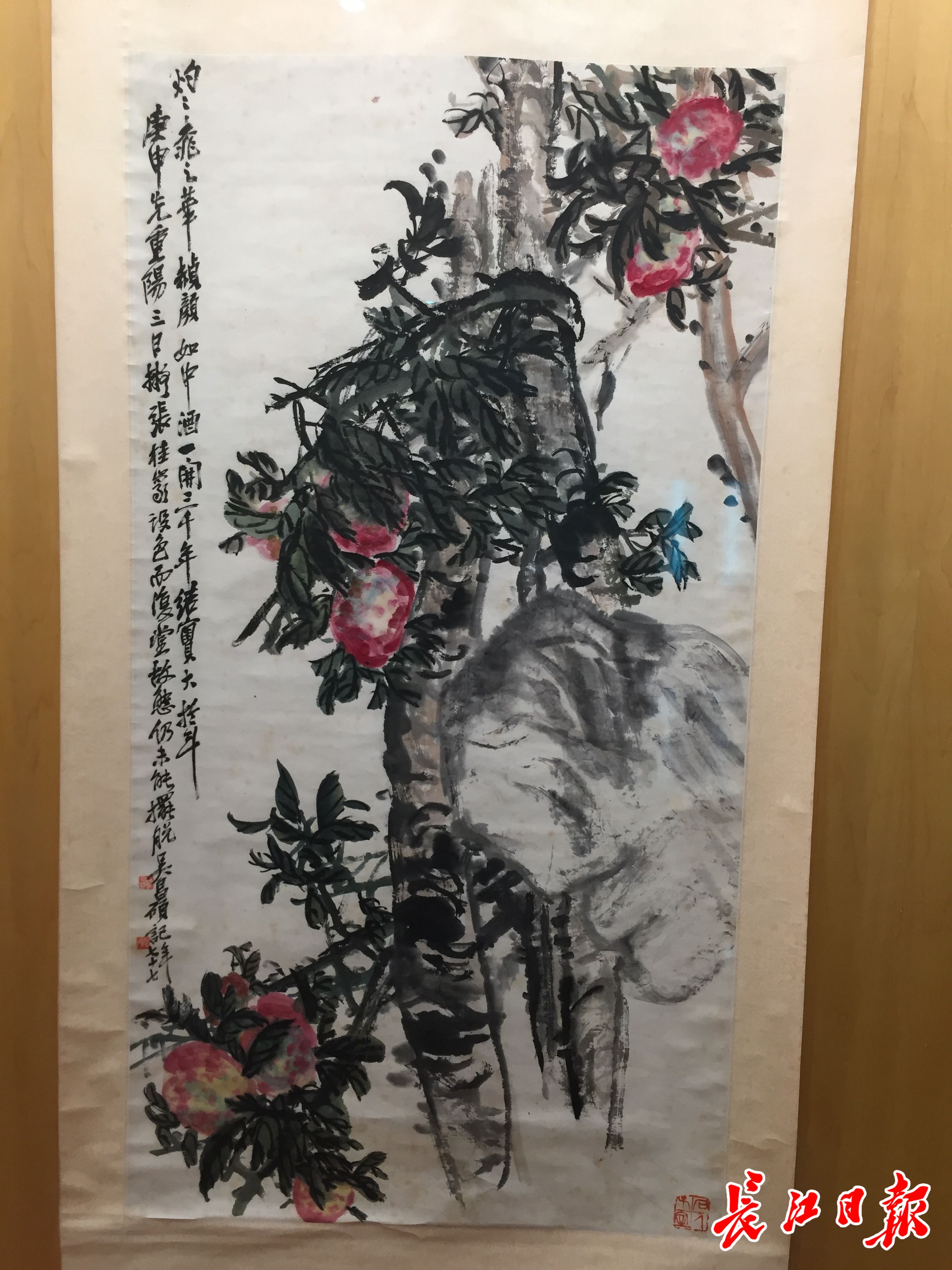 吴昌硕《设色桃中堂》。长江日报记者万建辉 摄