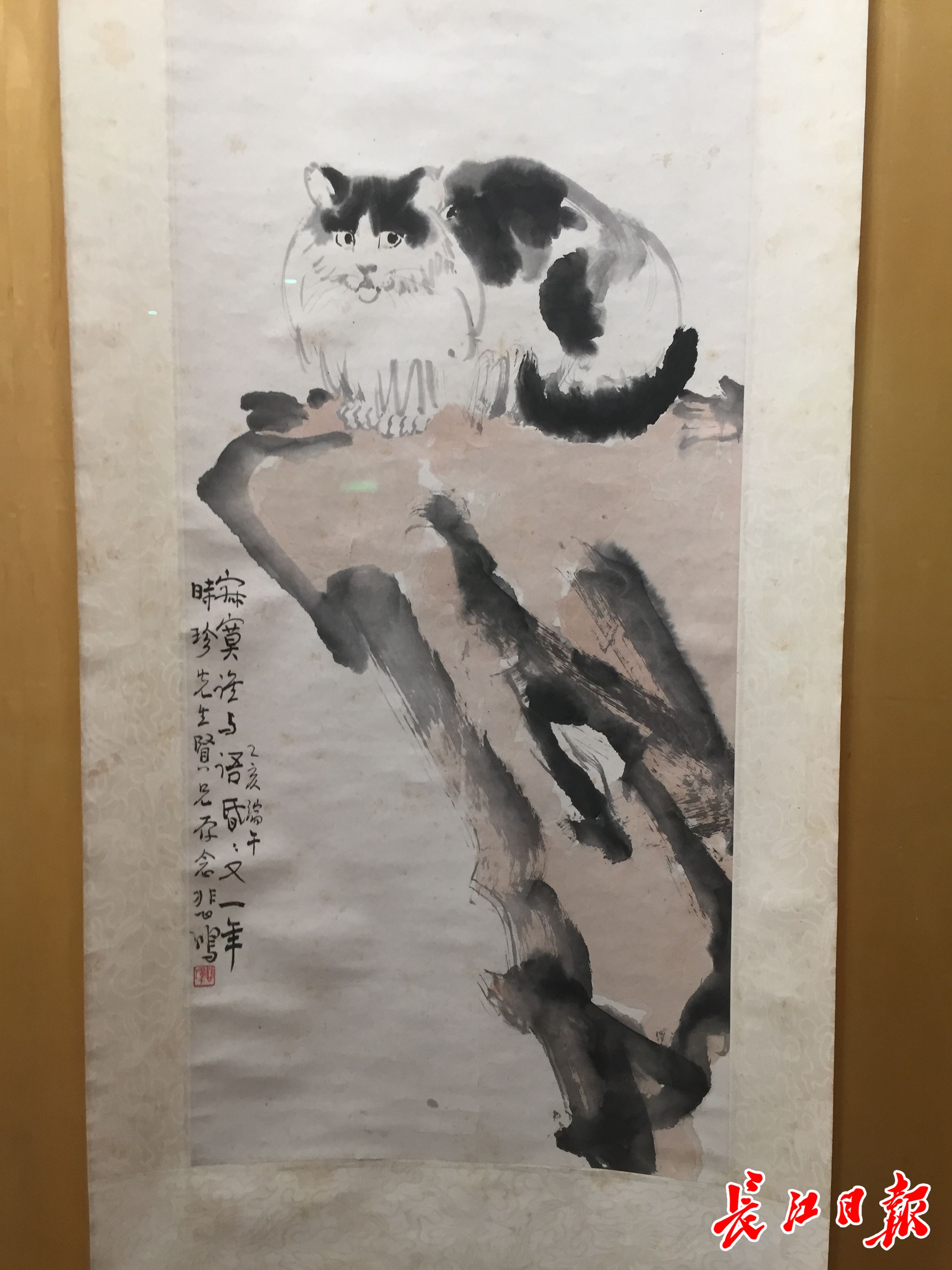 徐悲鸿作品《猫石图》轴。长江日报记者万建辉 摄