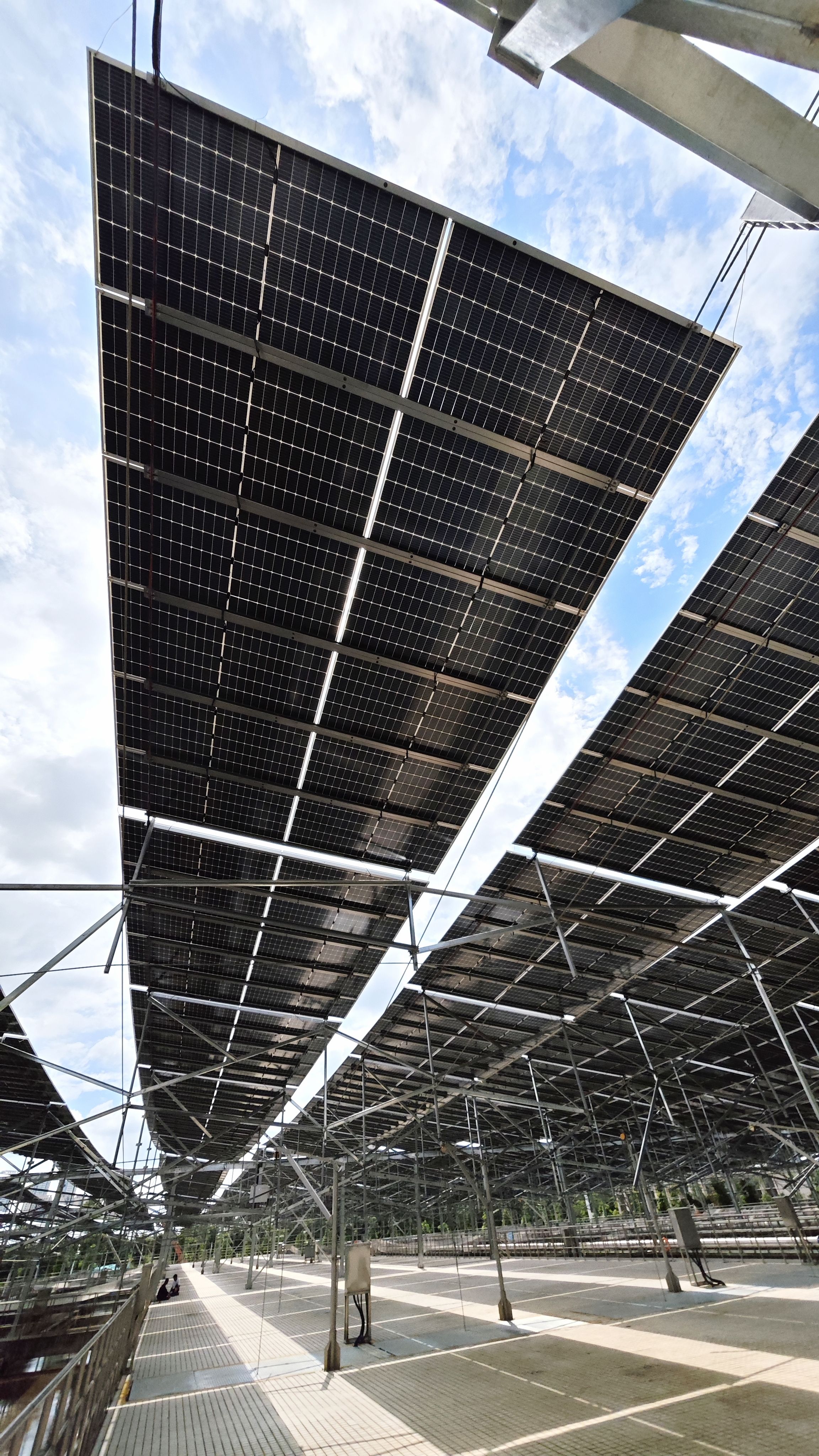 “秘诀就在这钢檩条上。”胡海鸥揭秘道。施工人员给光伏板穿上了“钢盔甲”,用钢檩条加固边框,这样既保持了刚性,又通过索结构柔性支撑,让光伏板在风中稳如泰山。这招还多了个好处,让光伏板装得更密,发电量直接提高了5%。
