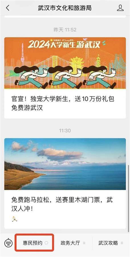 本次活动,面向武汉市普通高等学校2024年新录取的全日制大学生群体,包括大一、研一新生。“武汉文旅”小程序是官方唯一预约通道,预约之前,需提交个人信息及认证材料,核实大学新生身份。