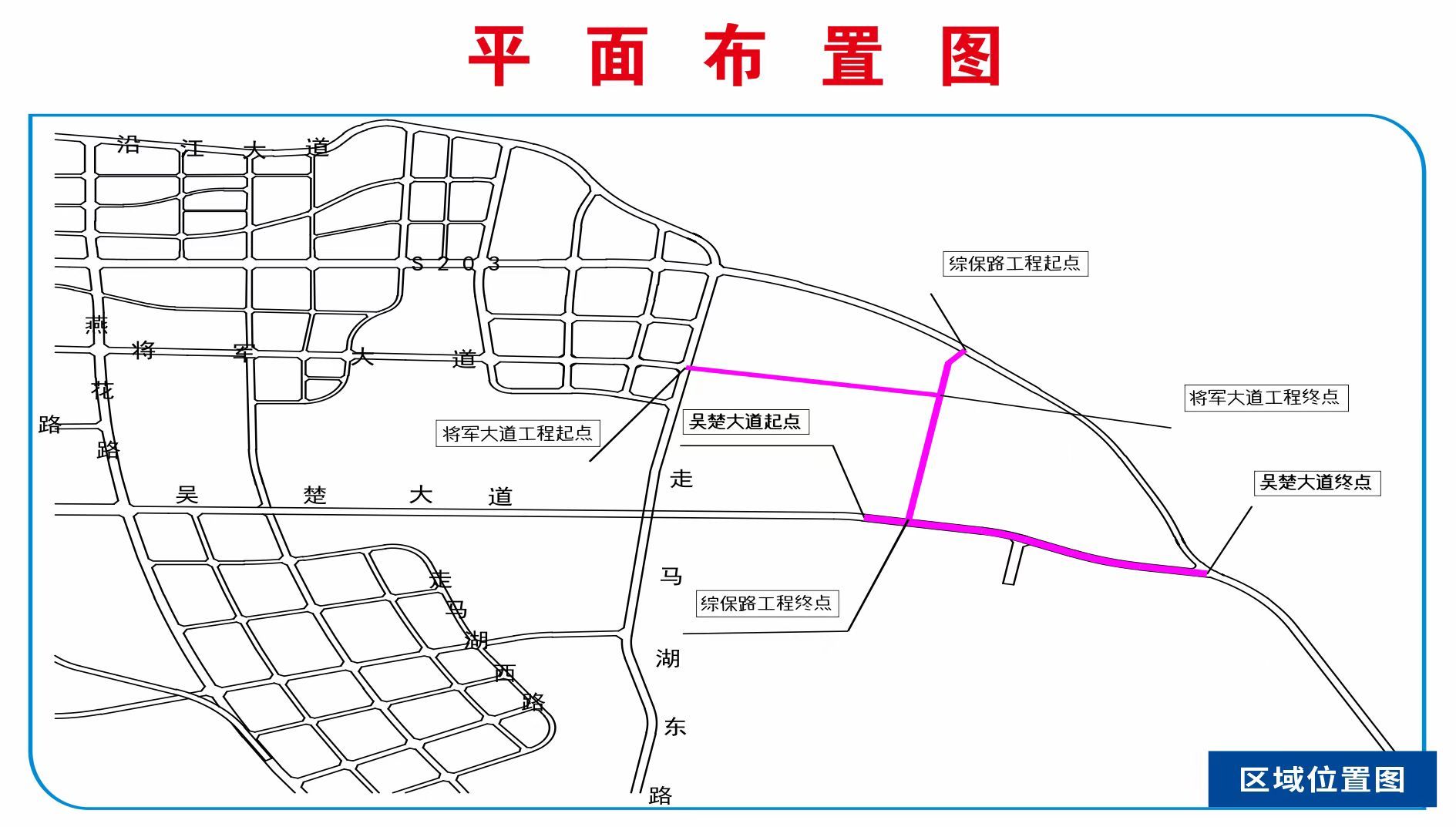 按照《武汉新城规划》,新城规划范围东至鄂咸高速,南至梁子湖,西至京广铁路,北至长江南岸,规划面积约719平方公里。《规划》指出,将军大道、吴楚大道均属于武汉新城东西走向的主干道。