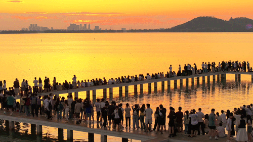 在武汉大学凌波门外看日出日落,是东湖边的浪漫仪式感。