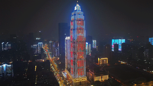 △黄鹤楼与武汉第一高楼绿地中心同框
