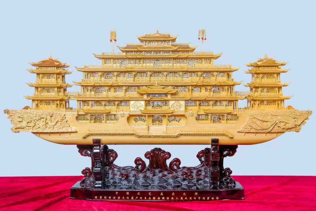武汉木雕船模武汉木雕船模创始于清末,同样是国家级非物质文化遗产。湖北木雕船品种繁多,五花八门,有民间木帆船、漕船、战船、龙舟、凤舟,民间灯会上的彩船等,反映出不同时期、不同地域木船的特点和装饰纹样。