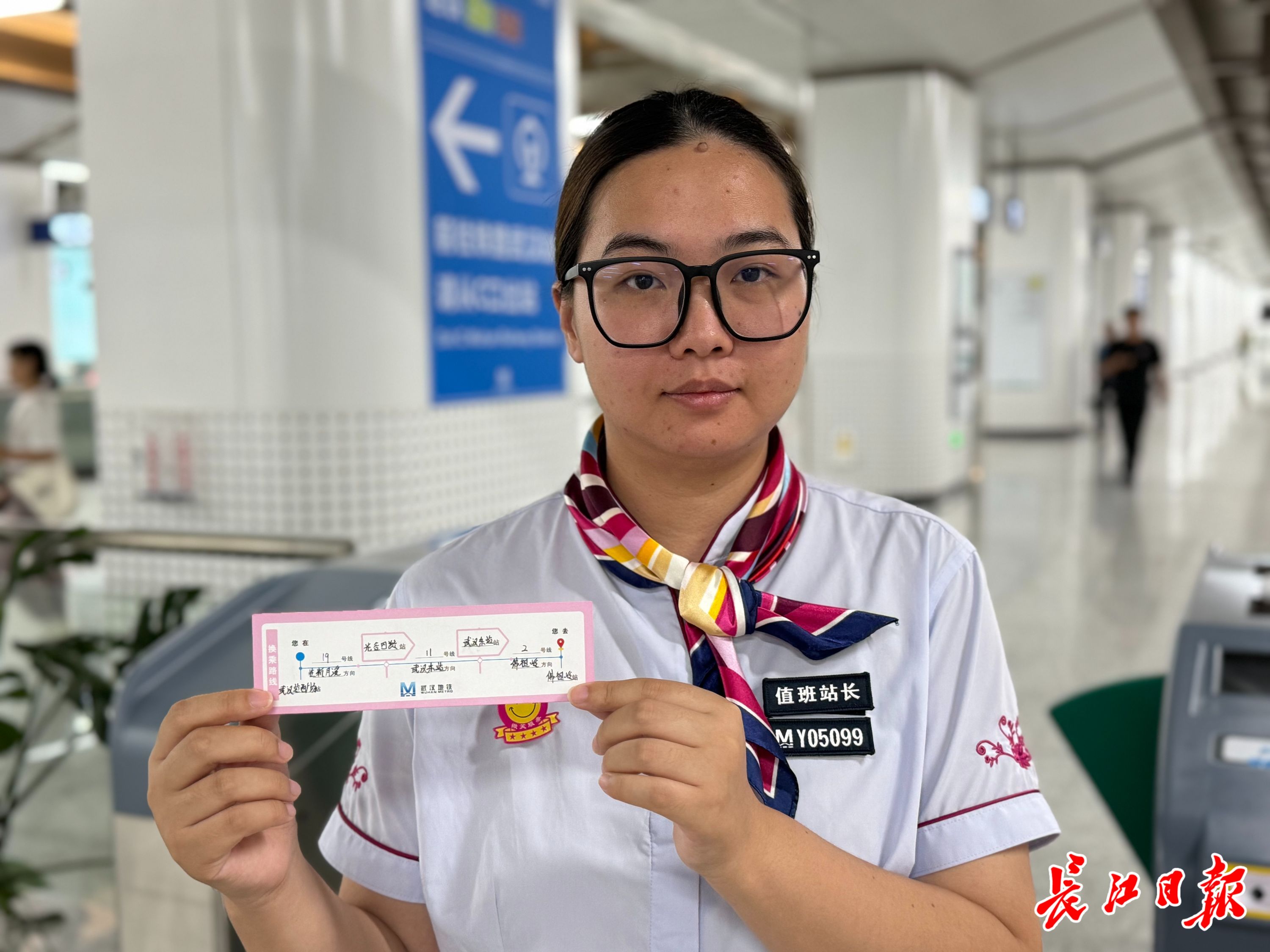 记者看到,车站准备了一种换乘卡片,上面标有起点、换乘站、终点以及乘坐往哪个方向的列车,对于初次来武汉的新生和家长们十分实用。