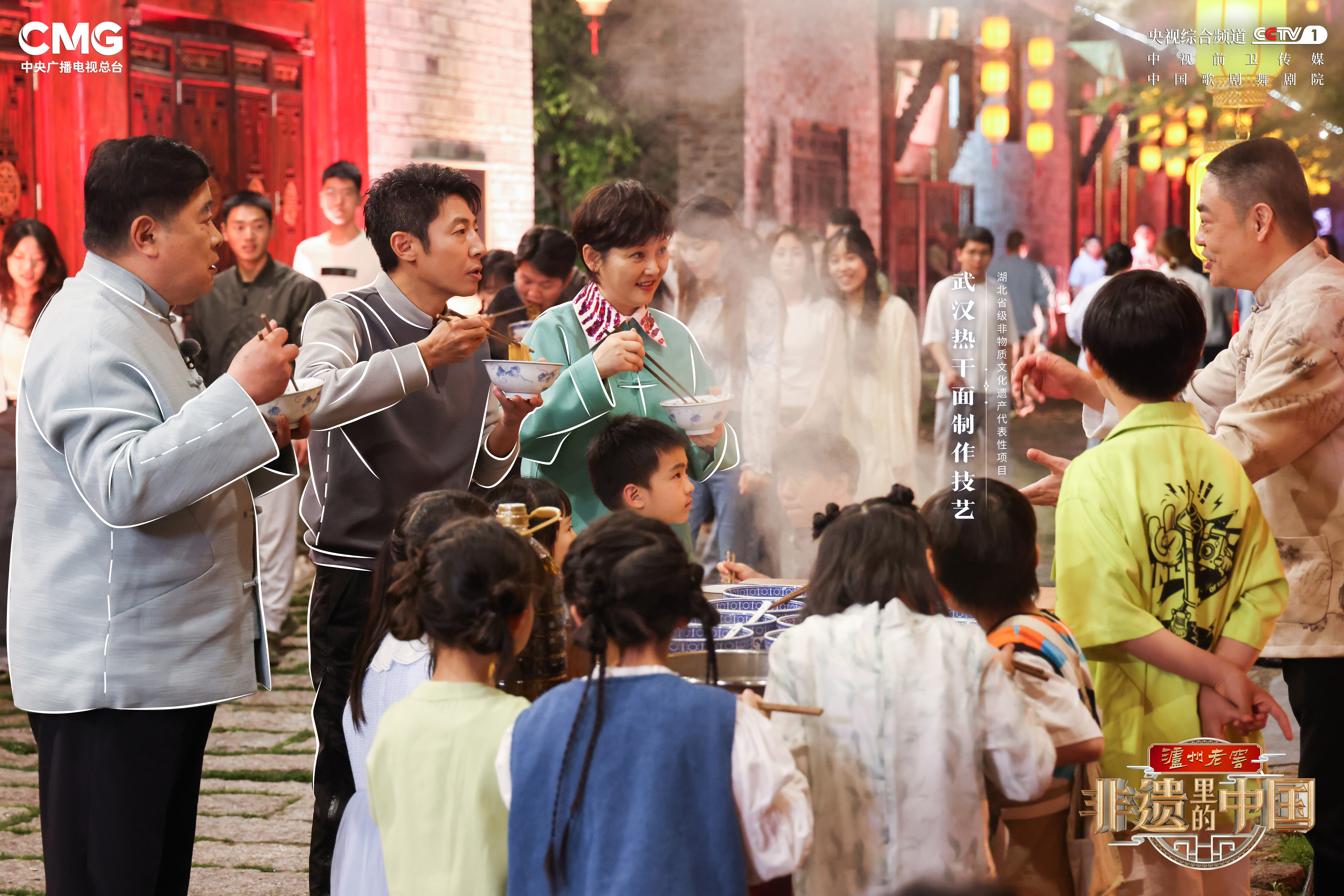 大型文化节目《非遗里的中国》湖北篇由中央广播电视总台与文化和旅游部联合摄制,撒贝宁、徐帆和故宫博物院学术委员会主任单霁翔先后走进武汉汉口里街区,登上古琴号游轮,通过秀演呈现、互动体验、文化解读、深度话题畅聊等多种形式,带观众领略湖北武汉非遗的绚丽风采。
