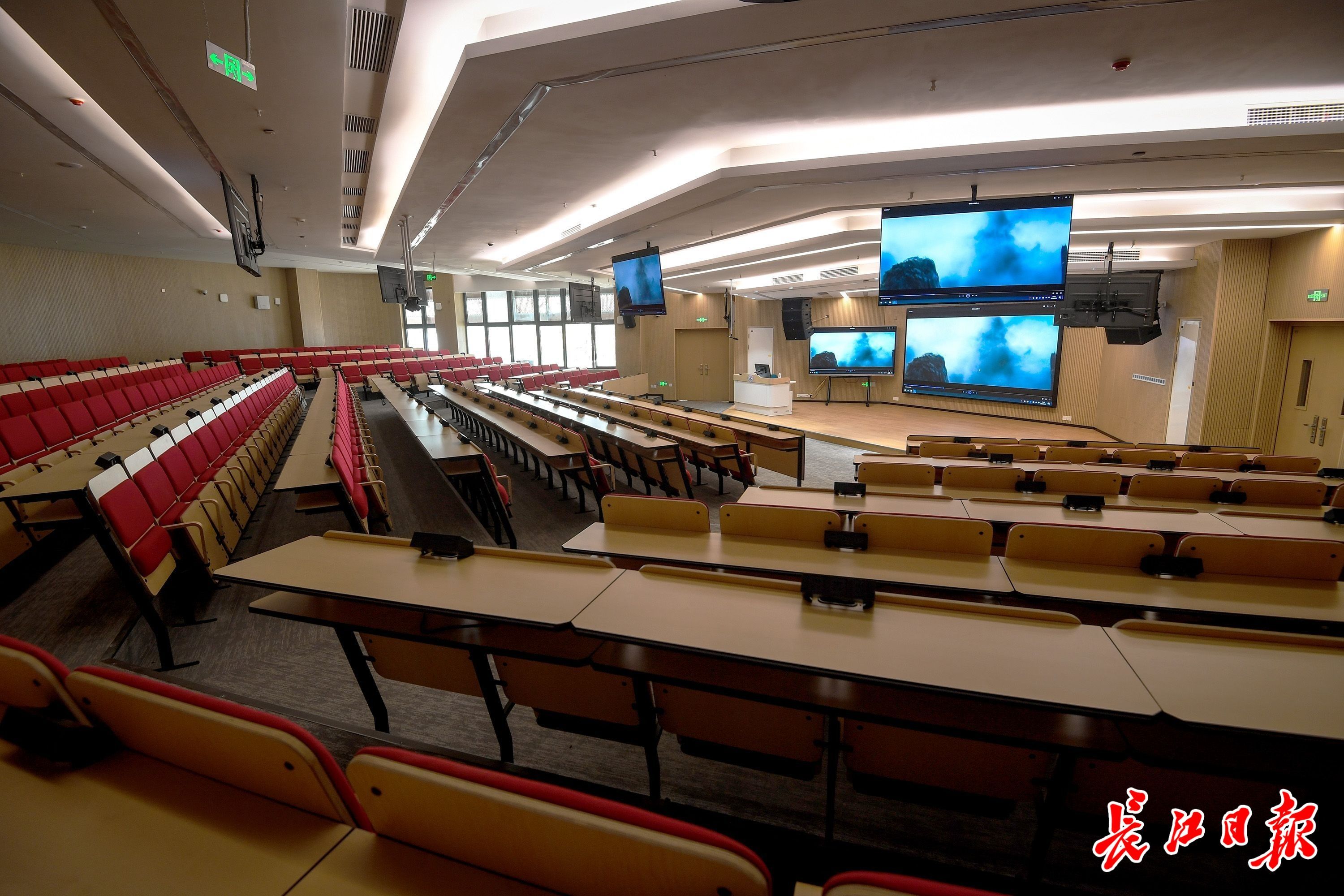 华中科技大学军山校区设备齐全的多功能教室。 长江日报记者史伟 摄