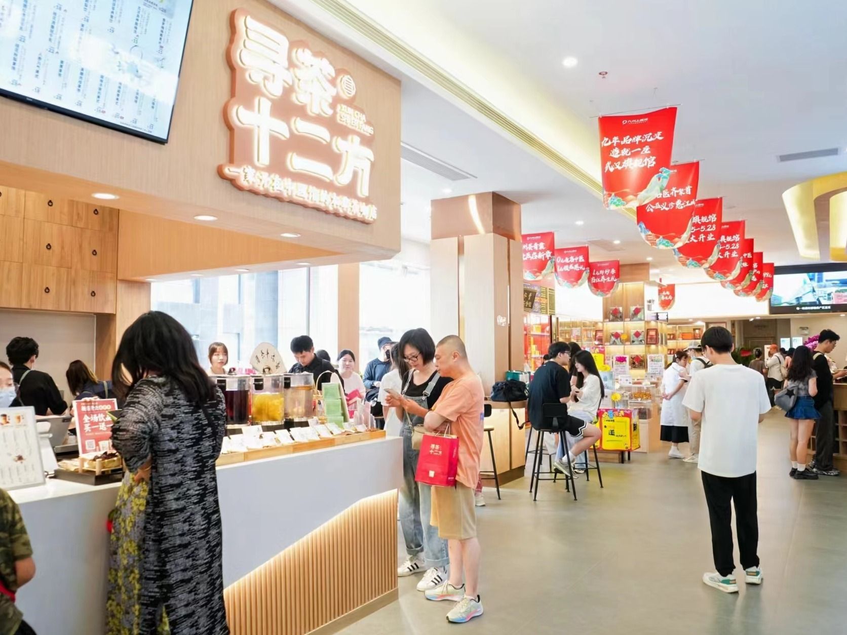 “寻茶十二方”隶属于九州上医馆,是一家开在中医馆里的中药茶饮店。该店项目主理人关翔告诉长江日报记者,门店自5月开业以来,生意火爆,周末更是人气居高不下,“尤其是11时到14时期间,3个店员每30秒就要出一杯,日销量已突破300单大关。本月销售额更有望突破15万元”。