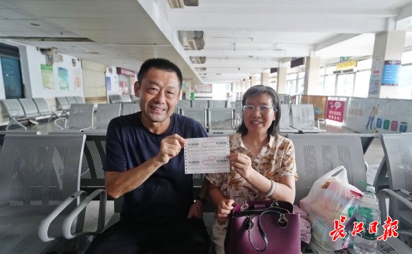 赵先生、谢女士夫妇展示乘车票。 长江日报记者何晓刚 摄