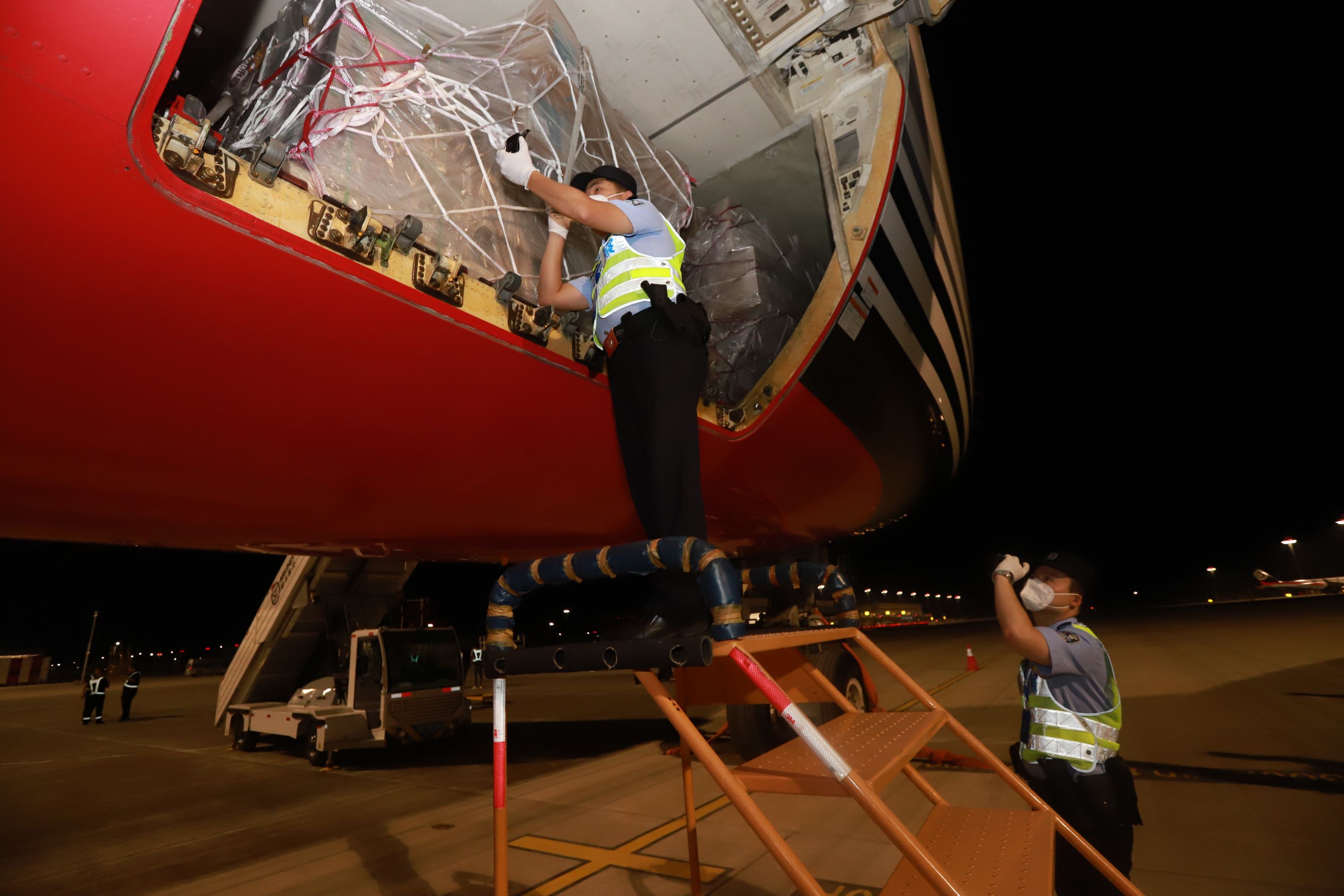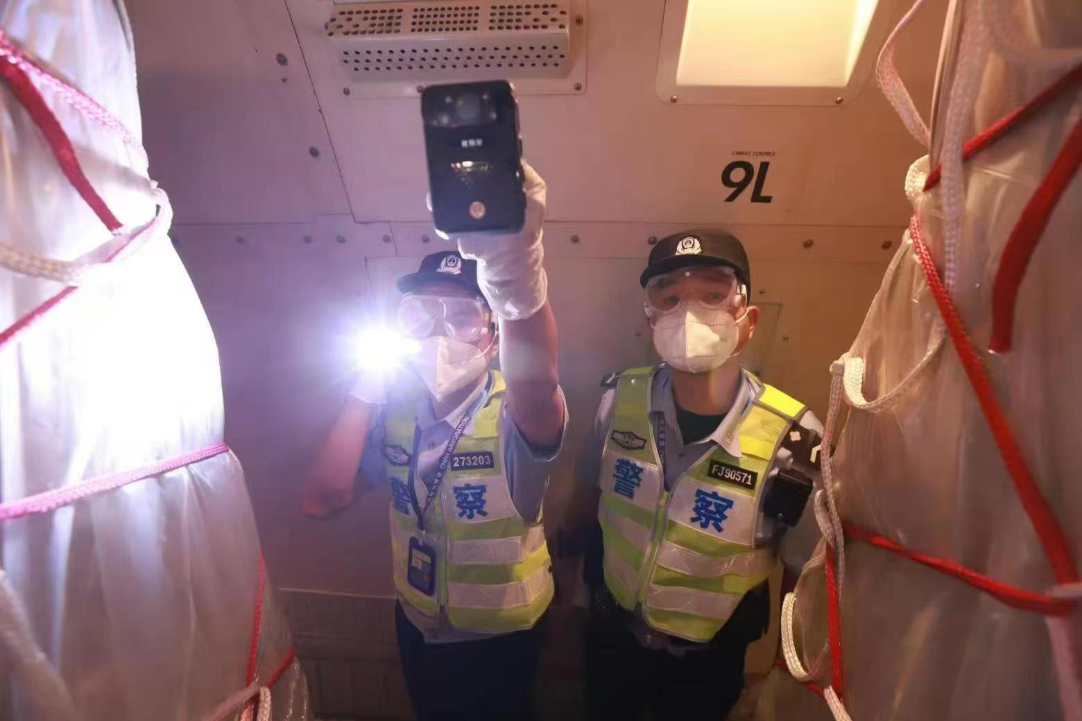 9月8日22时58分,湖北移民管理警察黄拥检查完塔什干—鄂州航班后,花湖机场在开通以来迎来单周的第200架次入境货运航班。当晚预报还有18架飞机待检,黄拥马不停蹄赶往停机坪南区。他说:“我是去年4月1日首批进驻的民警,那时一周只有8个航班。现在每天大约30个航班,夜间最为繁忙。”