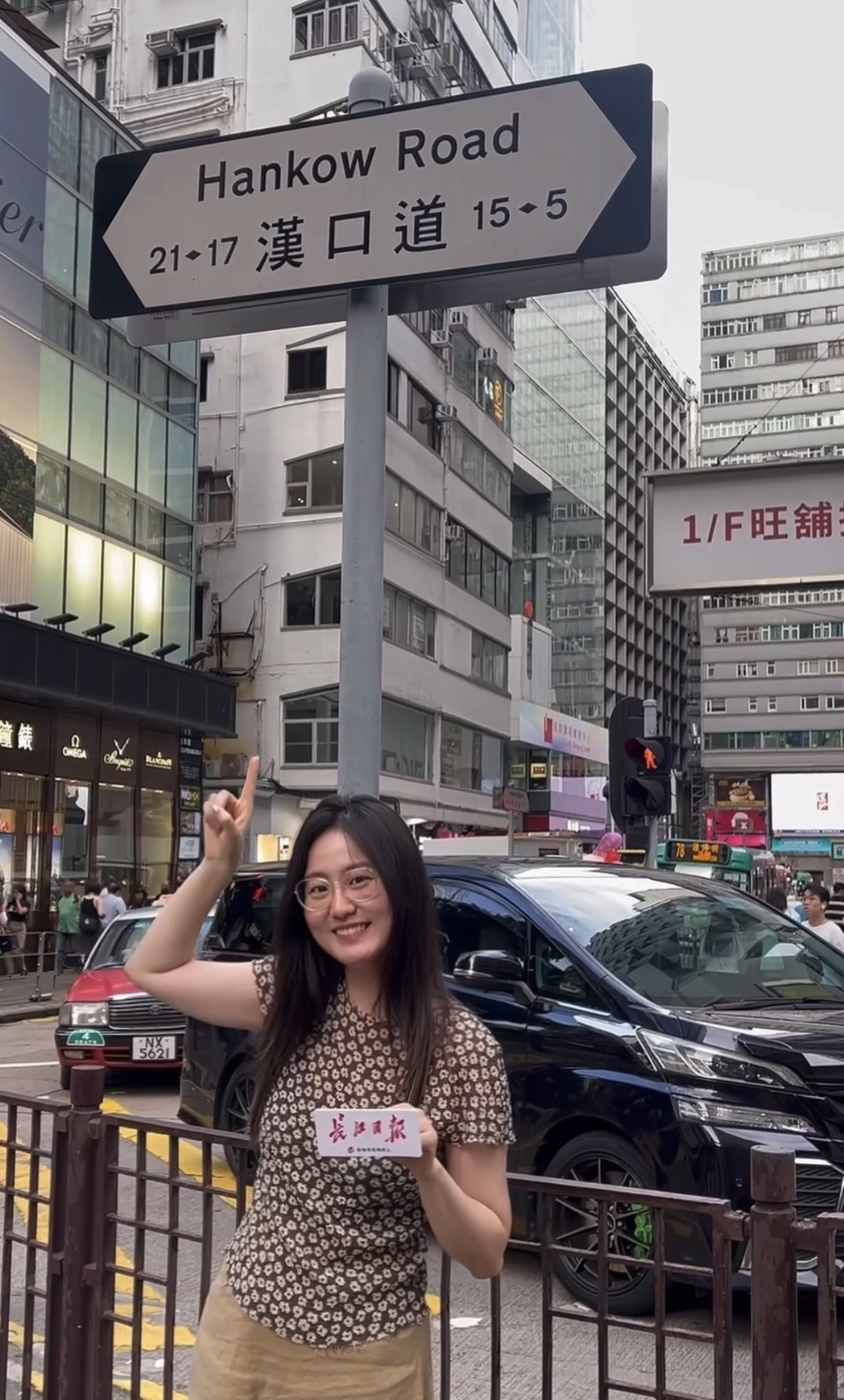 长江日报记者陈智在中国香港尖沙咀的汉口道。