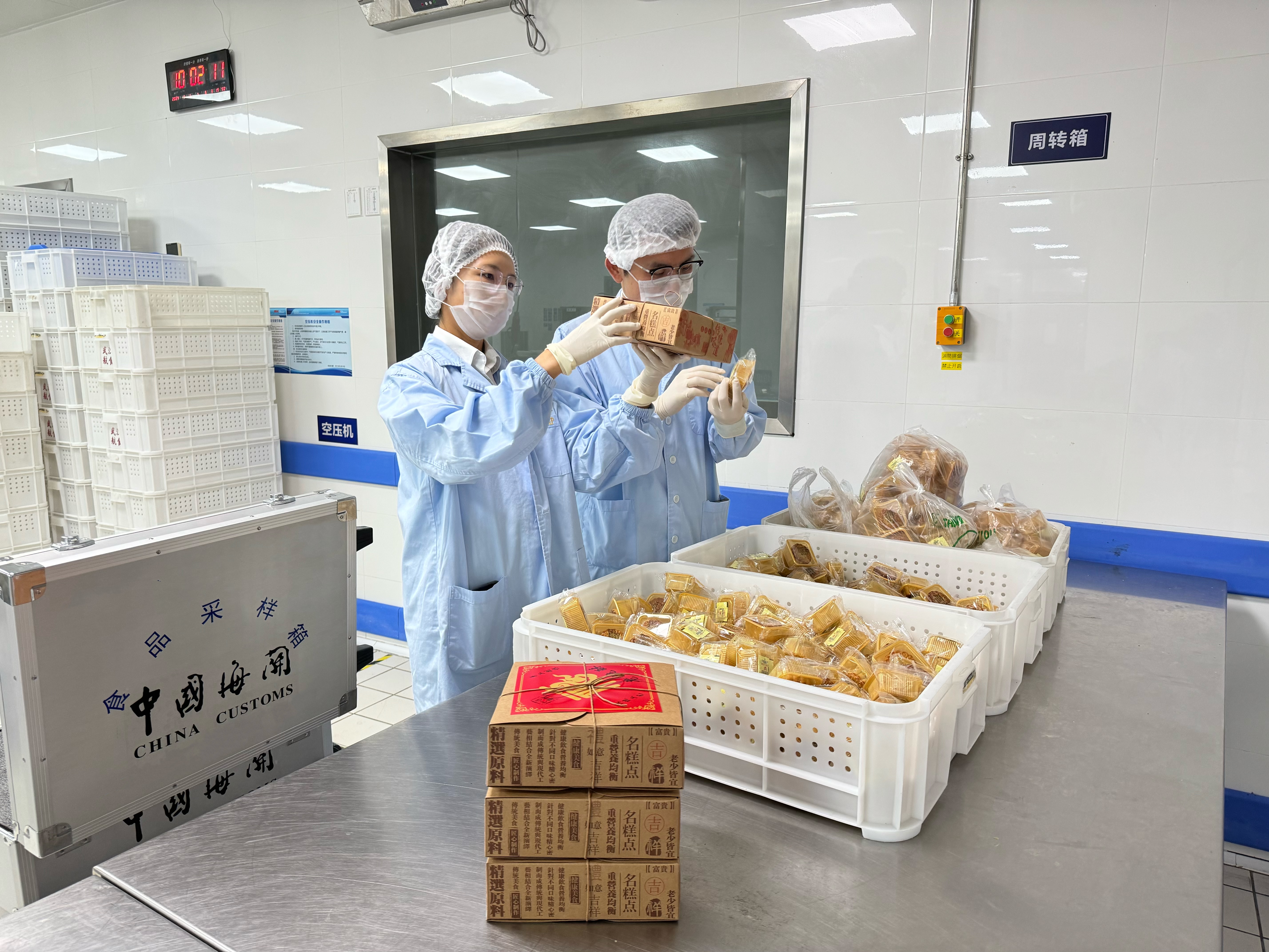 武汉天河机场海关卫生监督员对航空配餐企业开展节令食品卫生安全抽检。