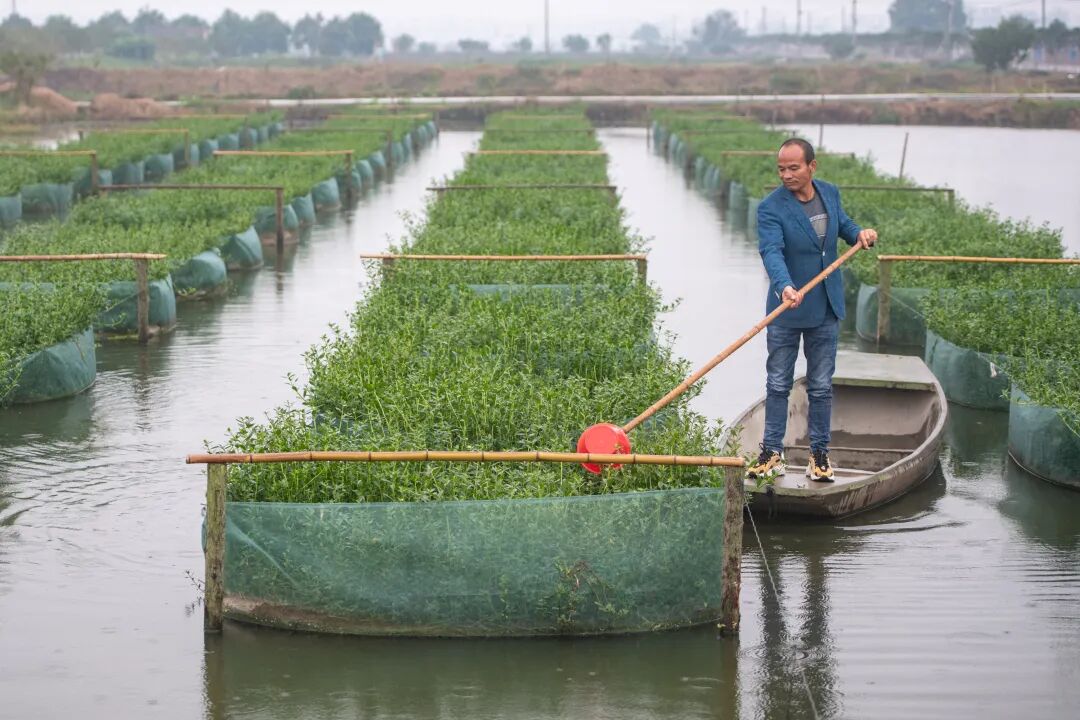 在湖北省仙桃市张沟镇先锋村,村民在清理养殖黄鳝的网箱。位于江汉平原的湖北省仙桃市有“中国黄鳝之都”的称号。新华社发 杜子璇 摄