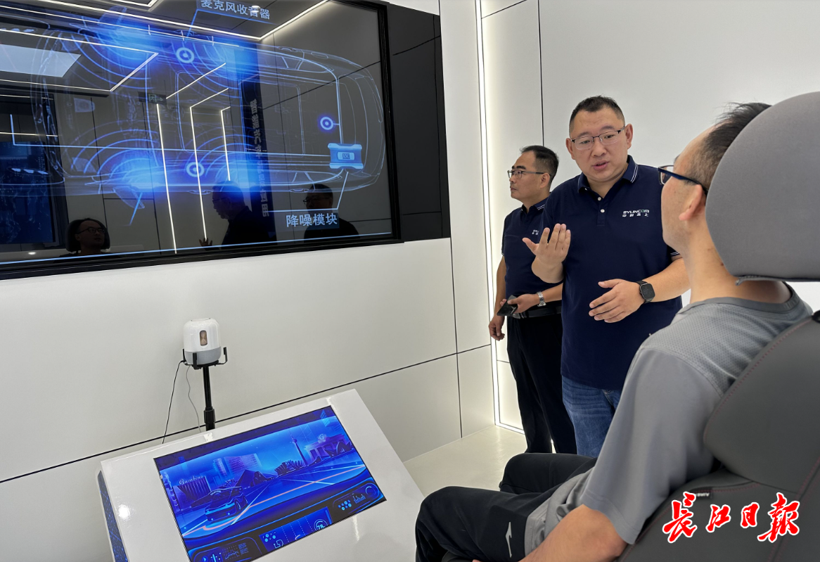 座舱外,模拟汽车行驶中发出的噪声轰轰作响,座舱内却静谧无声。这个运用“星闪”技术的静音智能座舱系统不久将运用在武汉生产的汽车上。 9月12日上午,位于国家网安基地的武汉中科晶上公司产品展厅智能汽车展示区,公司副总经理郝斌正在向武汉本地一家车企工作人员介绍“星闪”技术应用。