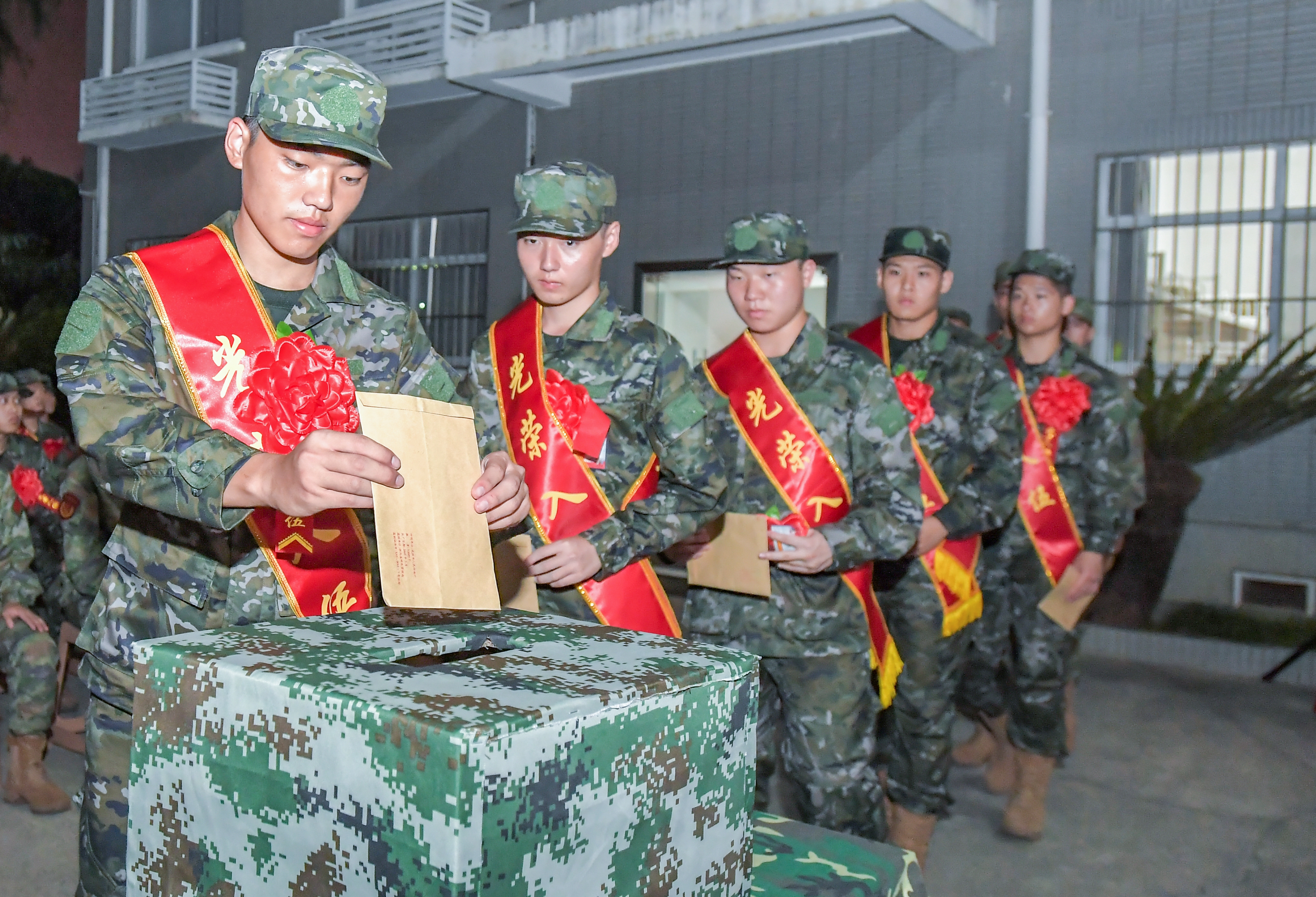 预定新兵把寄给未来自己的信件投进箱子里。通讯员徐竞锴 摄