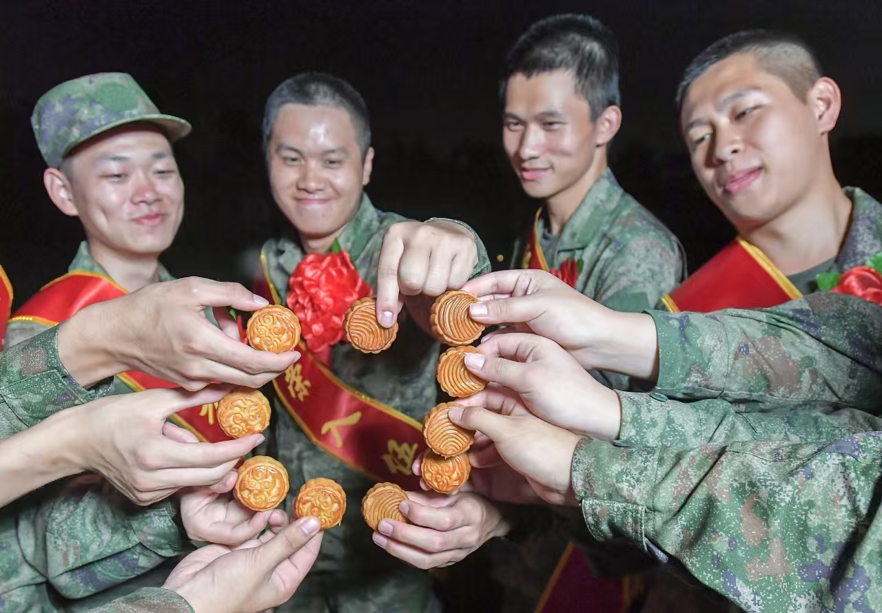 预定新兵过中秋佳节。通讯员徐竞锴 摄