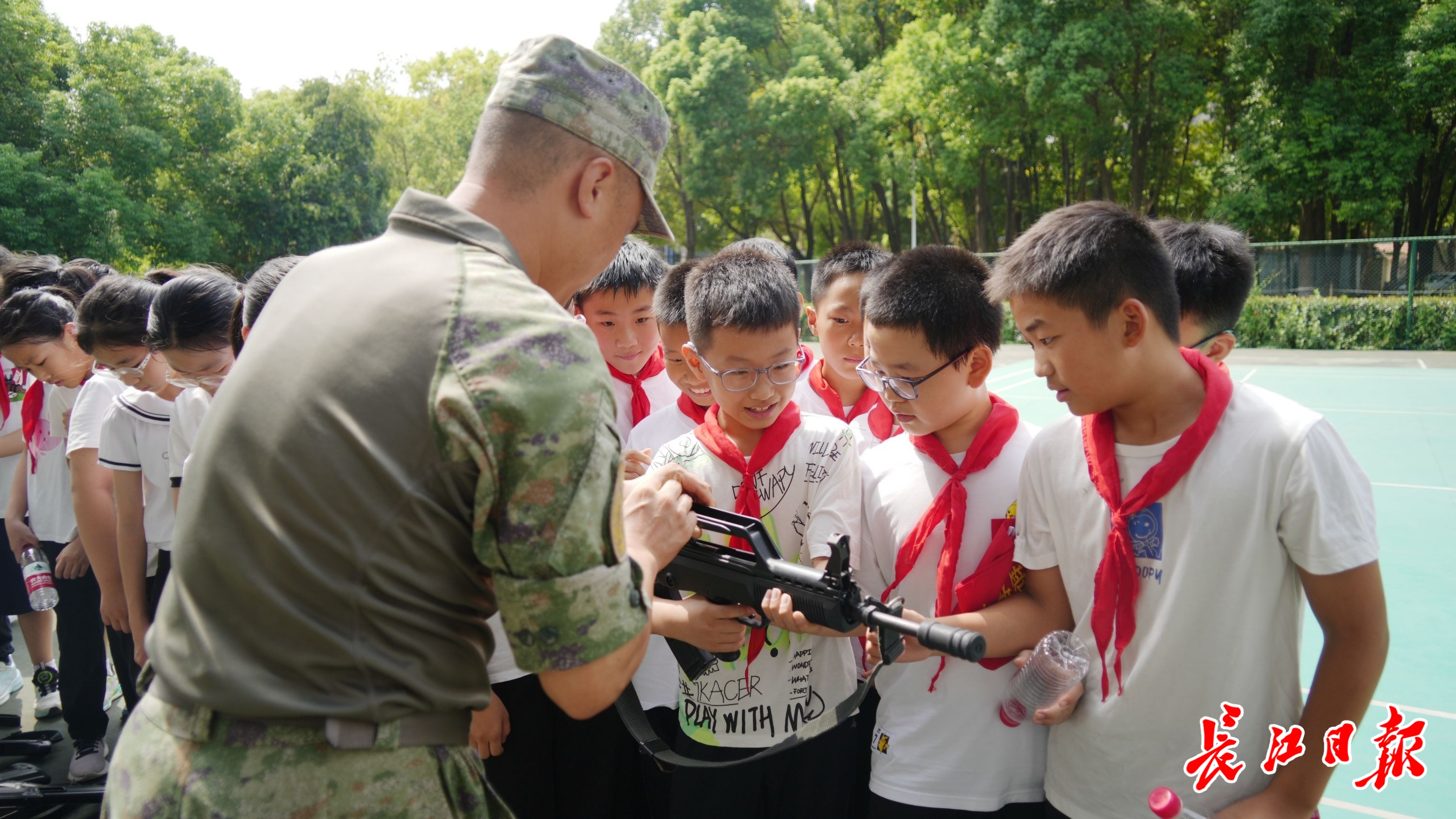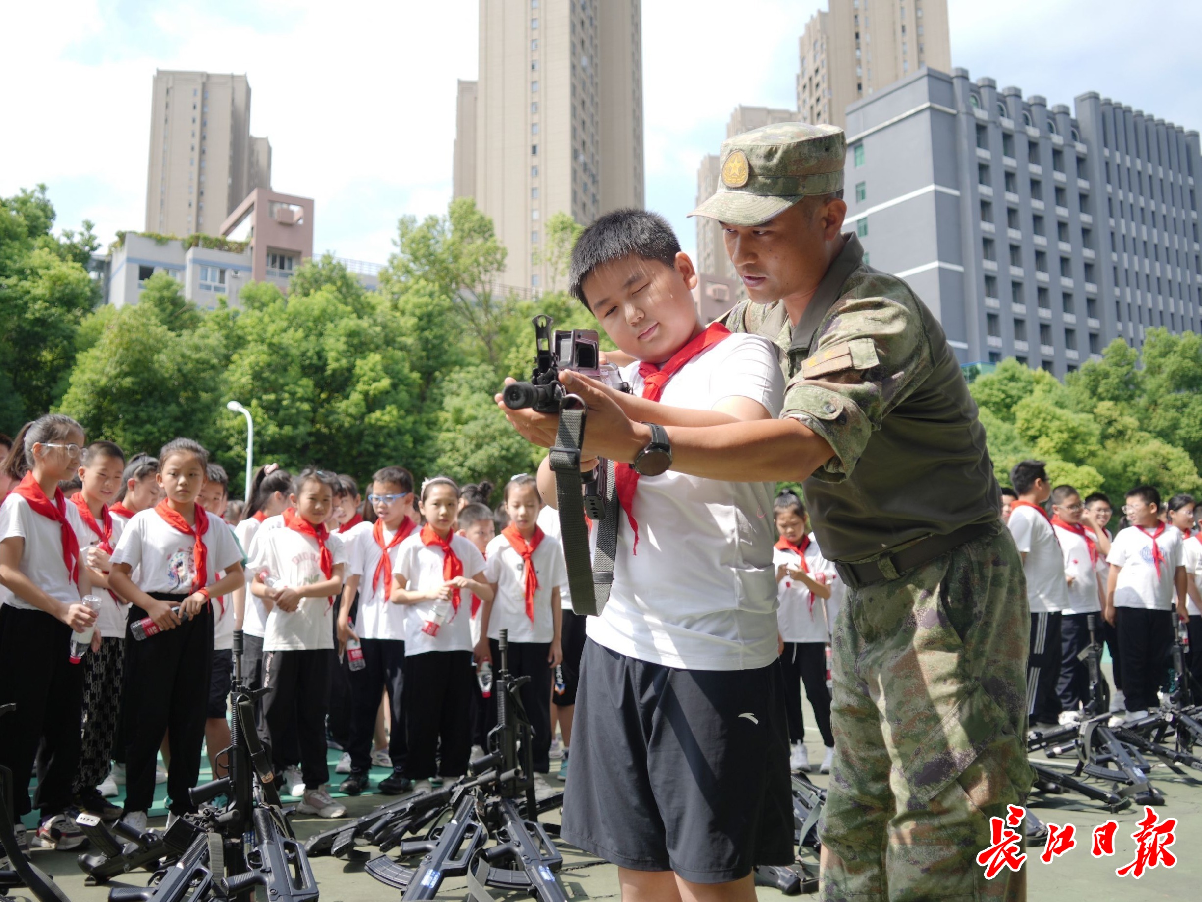 小学生与真枪进行“亲密接触”。 长江日报记者 何晓刚 摄