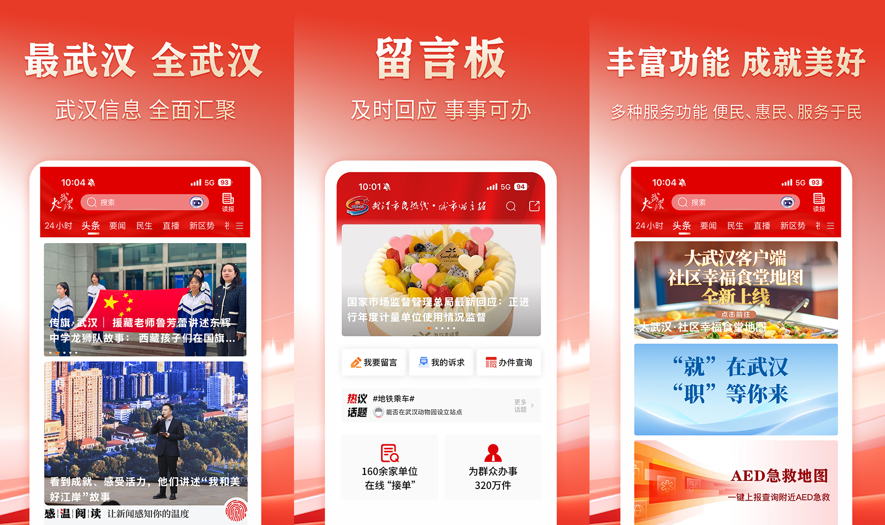 大武汉,大家的武汉。大武汉客户端由长江日报倾力打造,2021年3月上线,深耕本地,以新闻、互动、服务为特色,人人参与,人人分享,人人代言,共建共享“大家的武汉”。