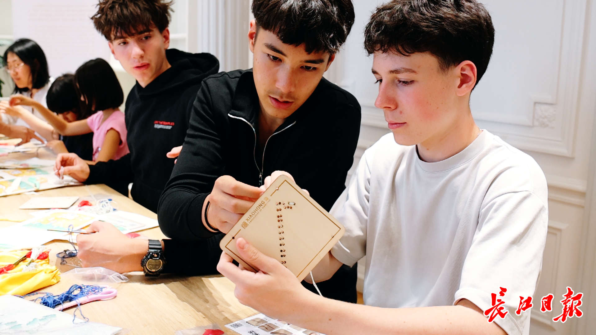Toni的爸爸是法国人、妈妈是中国人,目前正值高三紧张的备考冲刺阶段。听说湖北非遗来到了法国,趁着课业补习的时间空隙,他叫上了几个法国同学,赶到活动现场。“我爱中国文化,我很愿意分享给我的同学们。这对我来说是一次难得的机会,可以如此亲近中国文化。”Toni自豪地说。