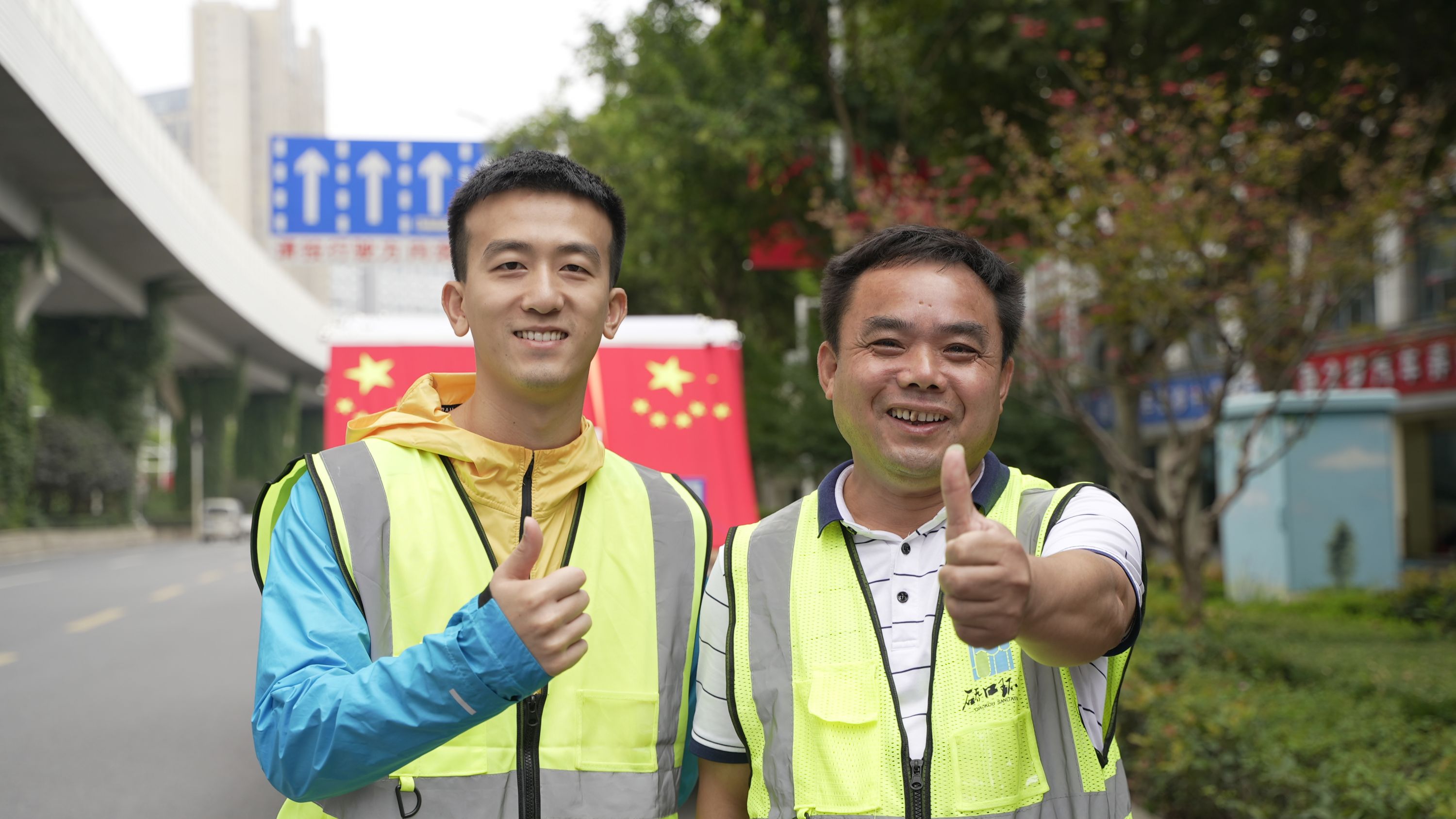 心怀着一份责任,我们仔细学习了升挂国旗的操作规程。双向六车道离地4米,其他路段离地3米……上路前,我把这些规则背得滚瓜烂熟。