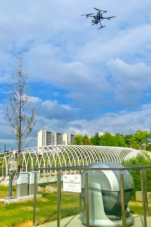 9月20日下午3时30分,位于光谷生态大走廊南三驿站的球形机库舱门缓缓开启,一架共享无人机“嗡”地快速升空,开始30分钟的生态大走廊日常巡检。