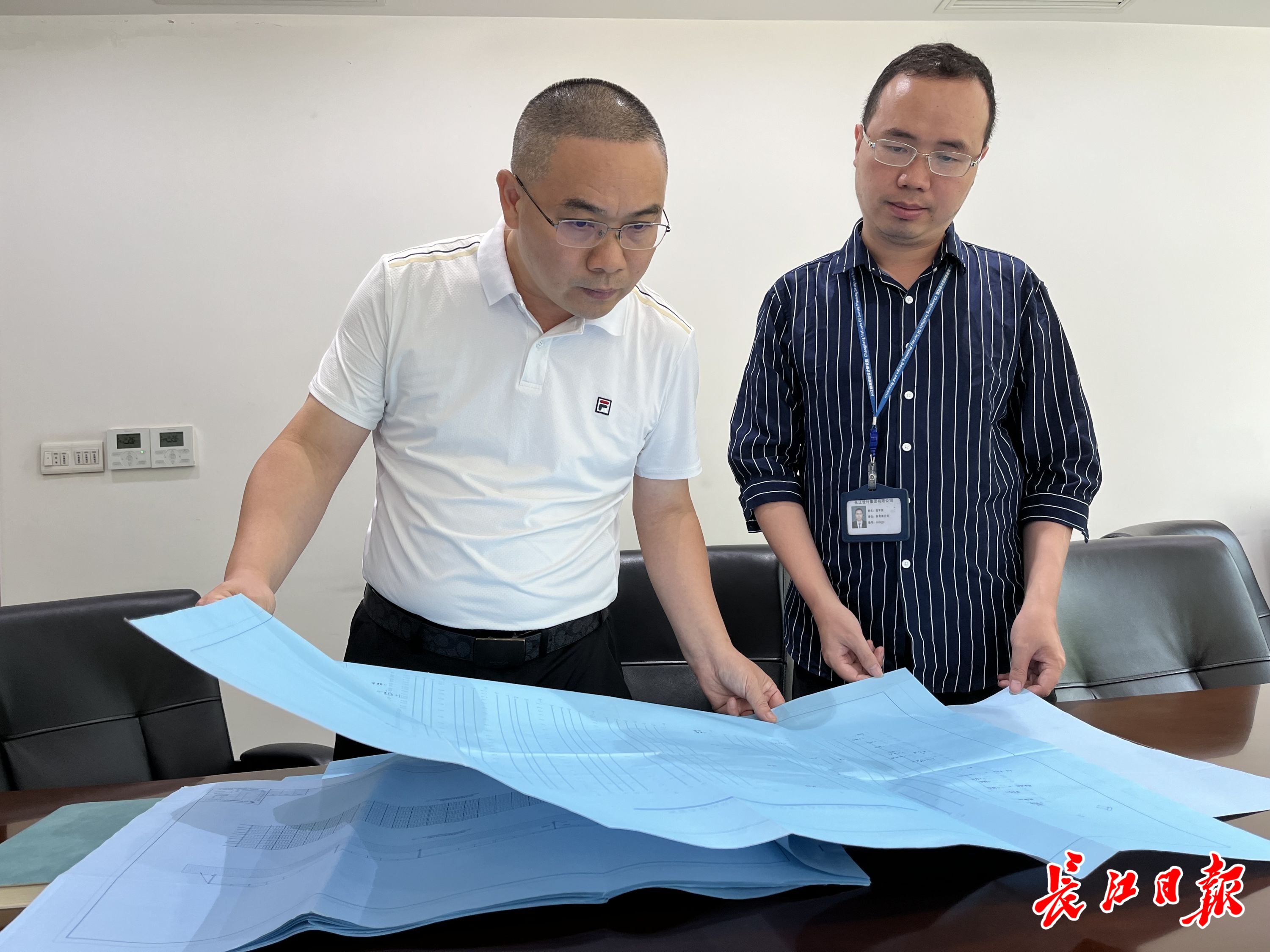 刘海波(左)与团队成员研究设计方案。长江日报记者宋磊 摄