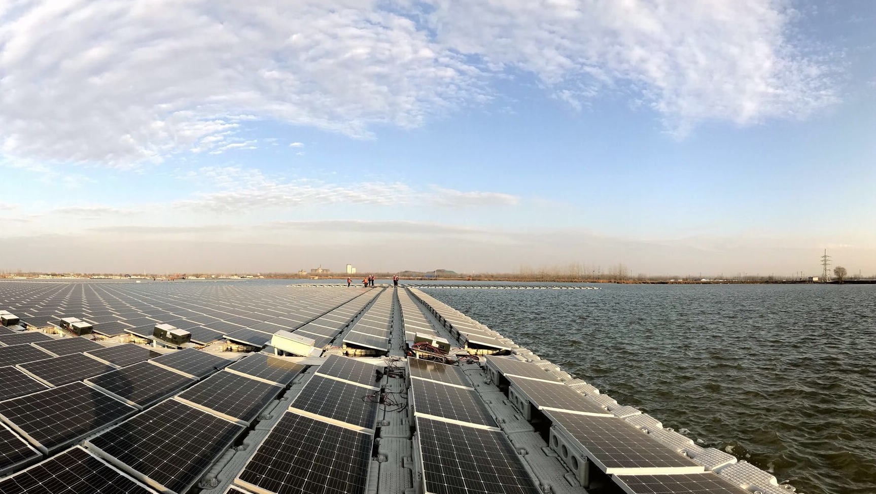 当第一片光伏板稳稳地悬挂在鱼塘上空,整个项目被赋予了新的生命。去年10月并网投用后,该项目也在业内“独树一帜”的评价声中创下国内渔光互补光伏项目连续跨最多、承重索最长的两项纪录。