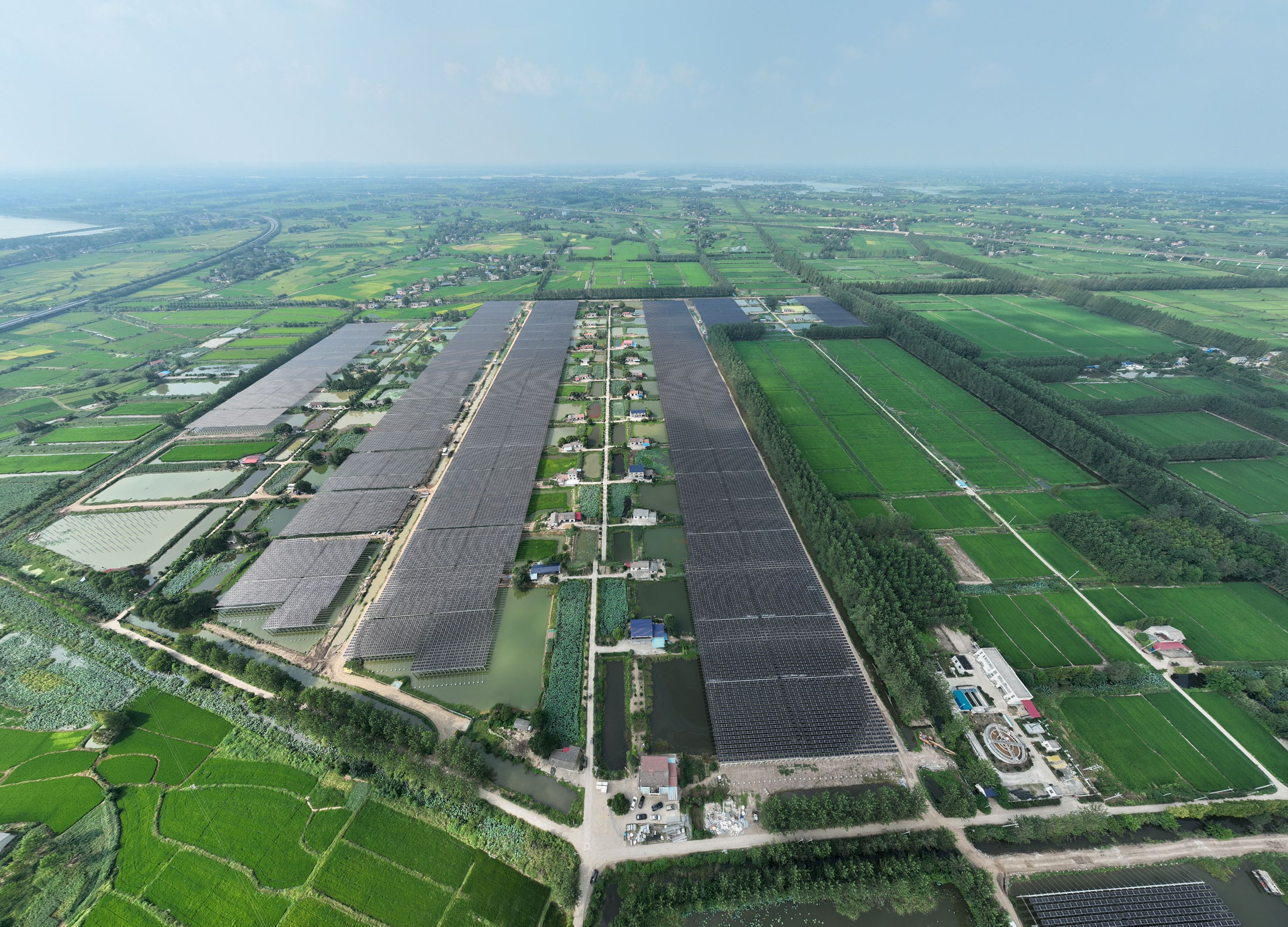 横跨鱼塘的光伏板稳如泰山