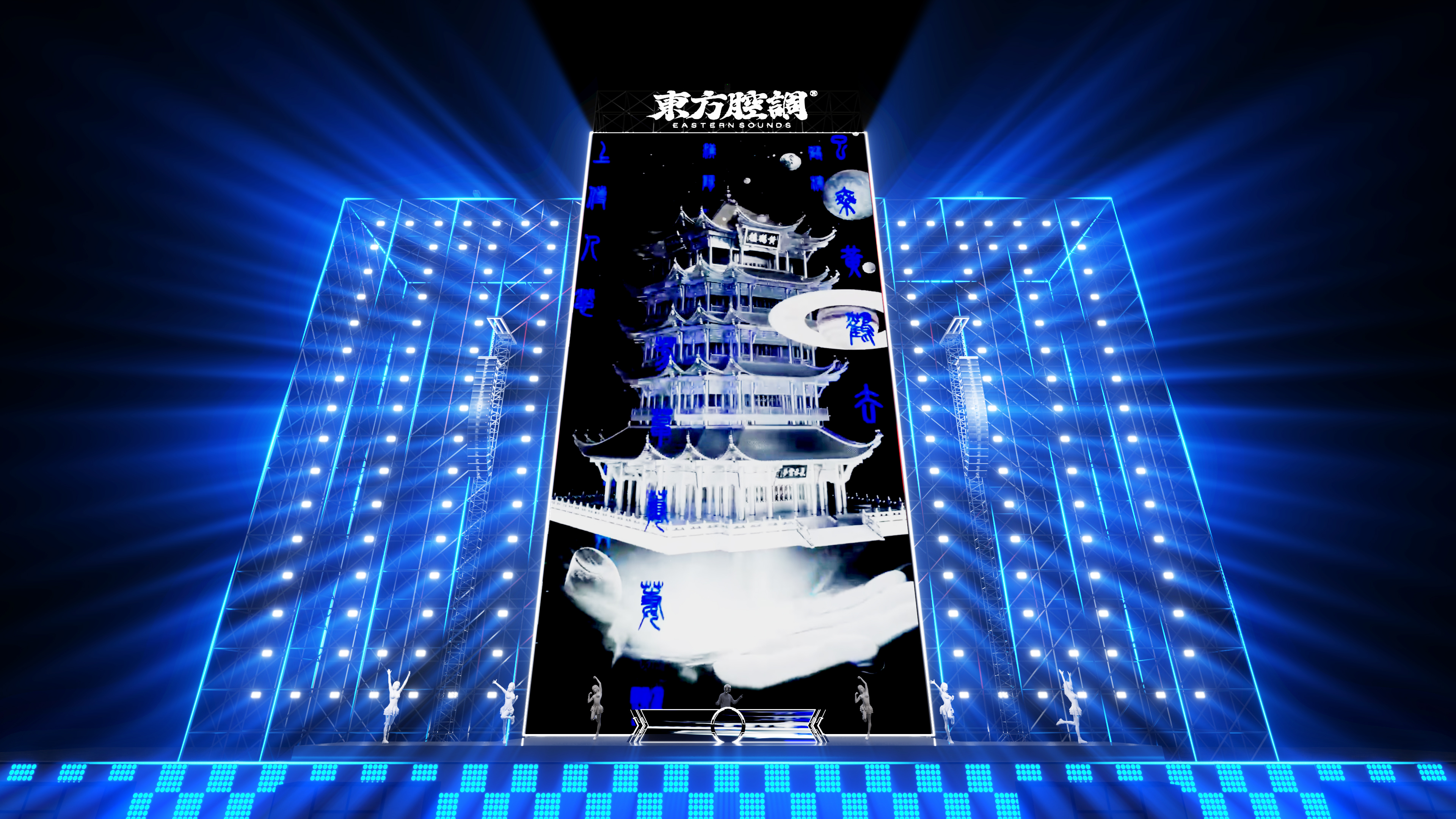 接着,山水画的流动、图腾的神秘、烟火的绚烂……在音乐的节奏中相继缓缓展开,带着你穿越时空,感受古老与未来的和谐共生。舞台中央,2000台国内顶级灯光、激光配置与全球领先的D&B GSL音响系统强强联手,为每一位表演者打造出如梦似幻的演出环境。