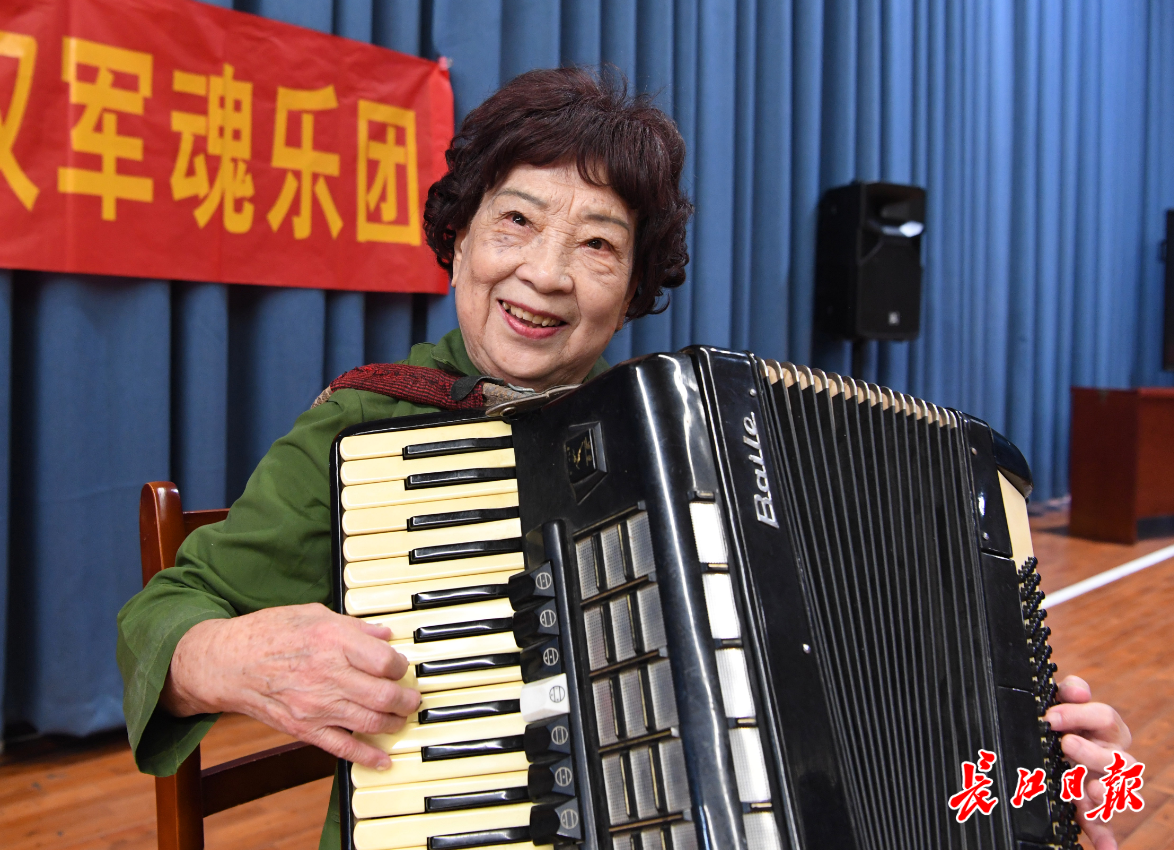 9月28日,90岁的王惠村表演手风琴独奏。记者高勇 摄