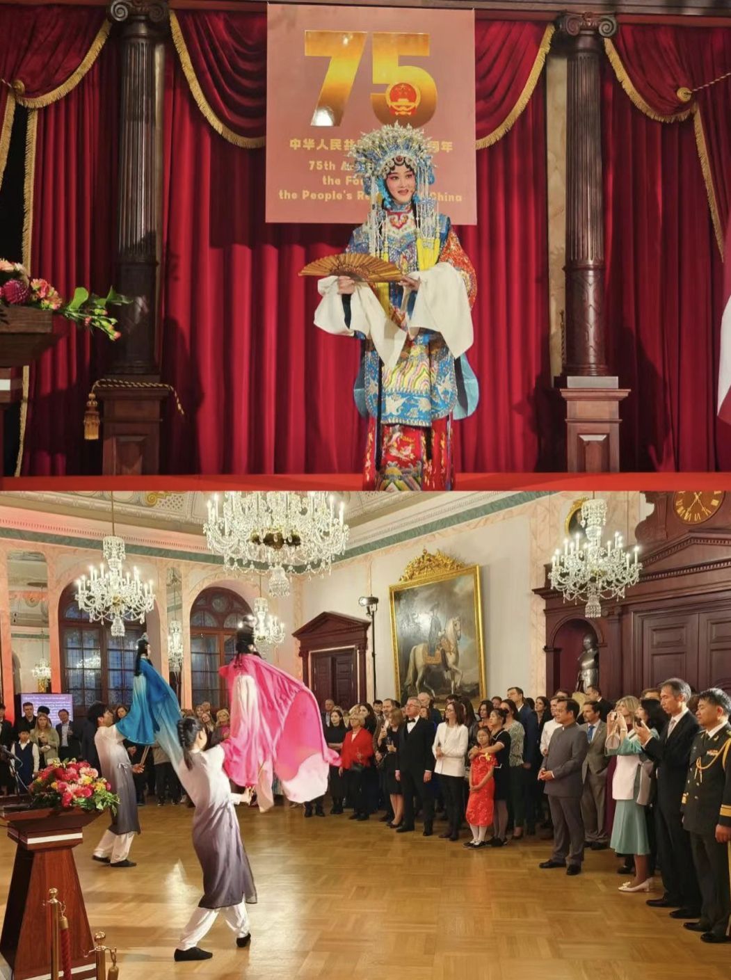 9月26日,代表团受邀参加由中国驻拉脱维亚使馆举办的庆祝中华人民共和国成立75周年招待会。武汉文旅代表团在招待会上的表演迎来了热烈的掌声。武汉汉剧院演员毕巍然和胡梓昱带来了汉剧“陈派”代表剧目《贵妃醉酒》和《穆桂英观阵》选段,以其华丽细腻的陈派唱腔深深打动了台下的观众,许多人被中国传统戏曲的魅力所震撼,纷纷要求合影留念,并表达了对中国戏曲文化的浓厚兴趣。“现场表演的时候音乐一响起,台下特别安静,我在表演的时候,感觉到台下的观众看得特别专注。”武汉汉剧院演员毕巍然告诉记者,在交流互动环节,她了解到拉脱维亚民众接触中国传统戏曲文化的机会很少,所以很感兴趣,“他们对汉剧的唱腔、音乐和戏曲装扮,都感觉非常惊艳,不停地对我说太漂亮了!”