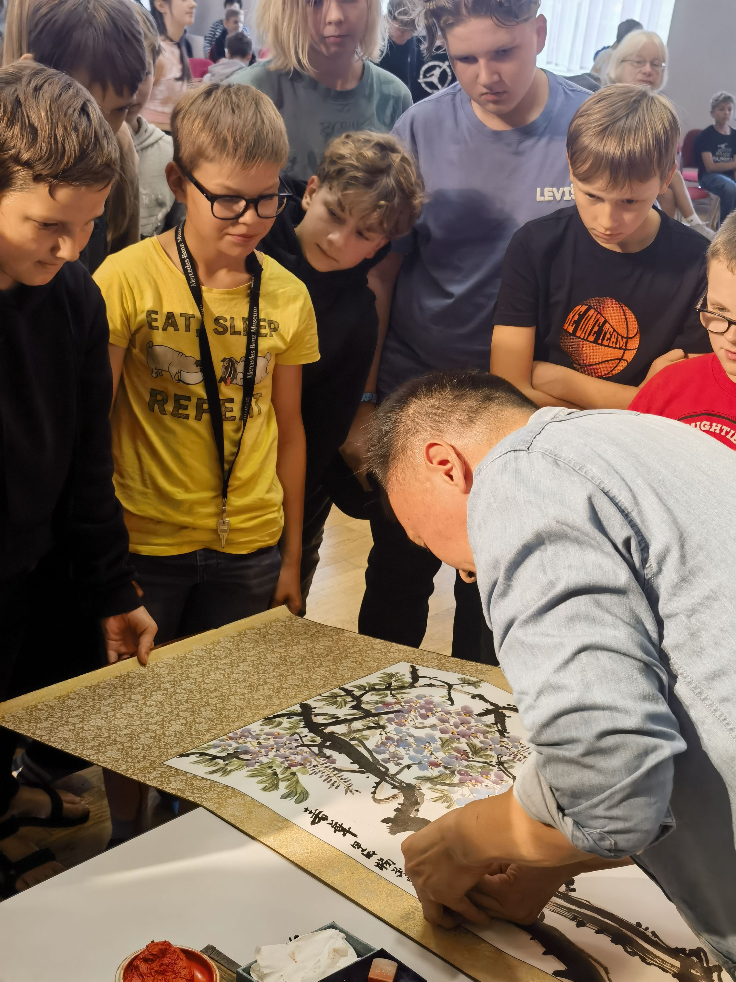 武汉美术馆展览部主任张文博在现场进行了书法展示和教学,宣传中国书法艺术。据了解,活动现场展示了以《论语》《老子》等经典文献名句为内容的书法作品,还通过不同书体的演绎,展现了中国文字的美学深度与历史变迁,传递出中国文化中包容、内省与追求和谐致远的精神特质。武汉市群众艺术馆美术干部、湖北中国画研究院副院长杨茂宗在现场还开展国画教学和互动,宣传中国国画艺术。拉脱维亚民众在现场积极提问,表达了对中国书法和国画的浓厚兴趣。张文博介绍,此次文化交流活动,他们还带去了一件与黄鹤楼有关的诗词书法作品,以书法的形式宣传了湖北的文化。