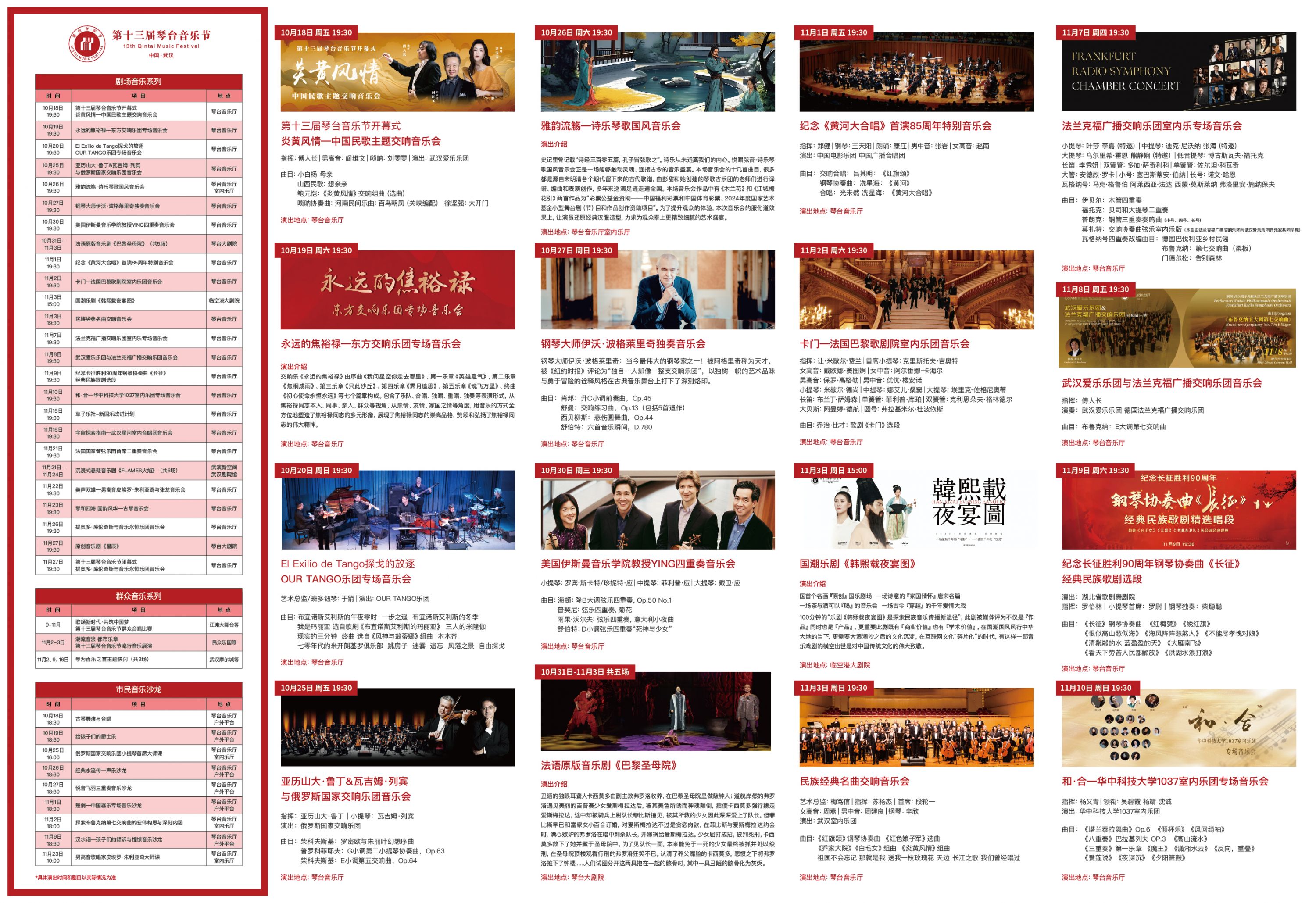 一是举办24个项目34场剧场音乐演出。开幕式邀请著名男高音歌唱家阎维文、唢呐演奏家刘雯雯、指挥家傅人长,联袂武汉爱乐乐团演出《炎黄风情——中国民歌主题交响音乐会》,闭幕式邀请提奥多·库伦奇斯携音乐永恒乐团演出《提奥多·库伦奇斯与音乐永恒乐团音乐会》,剧场音乐系列涵盖交响乐、音乐剧、国风音乐、室内乐、钢琴、声乐、古琴、合唱等多种艺术类别。