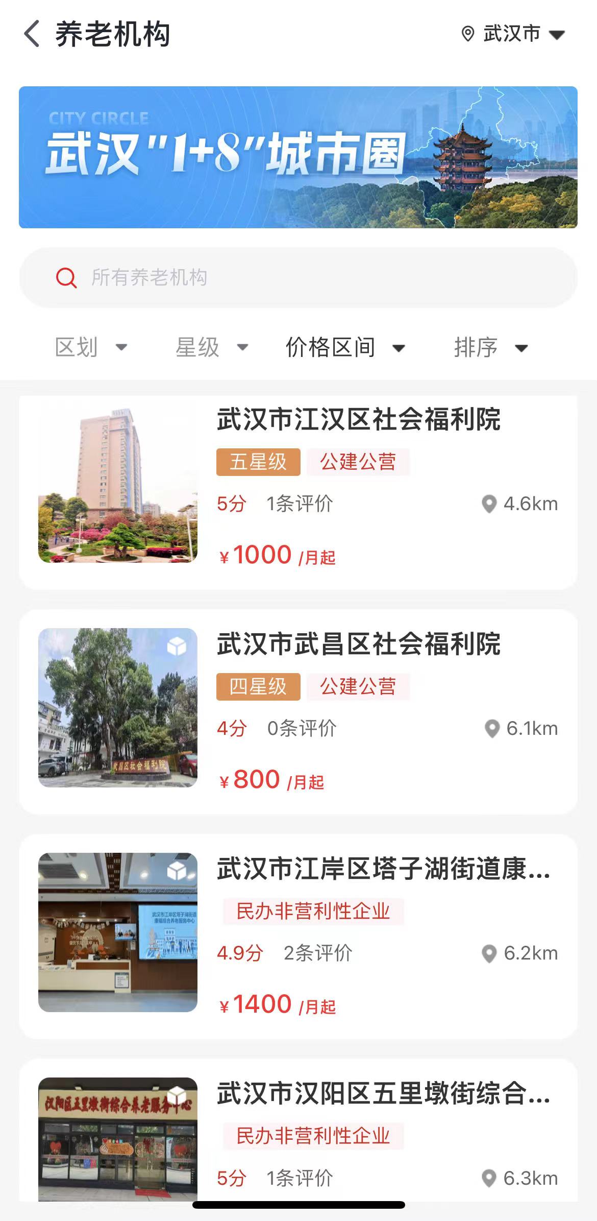 养老机构模块可查看养老机构的信息。