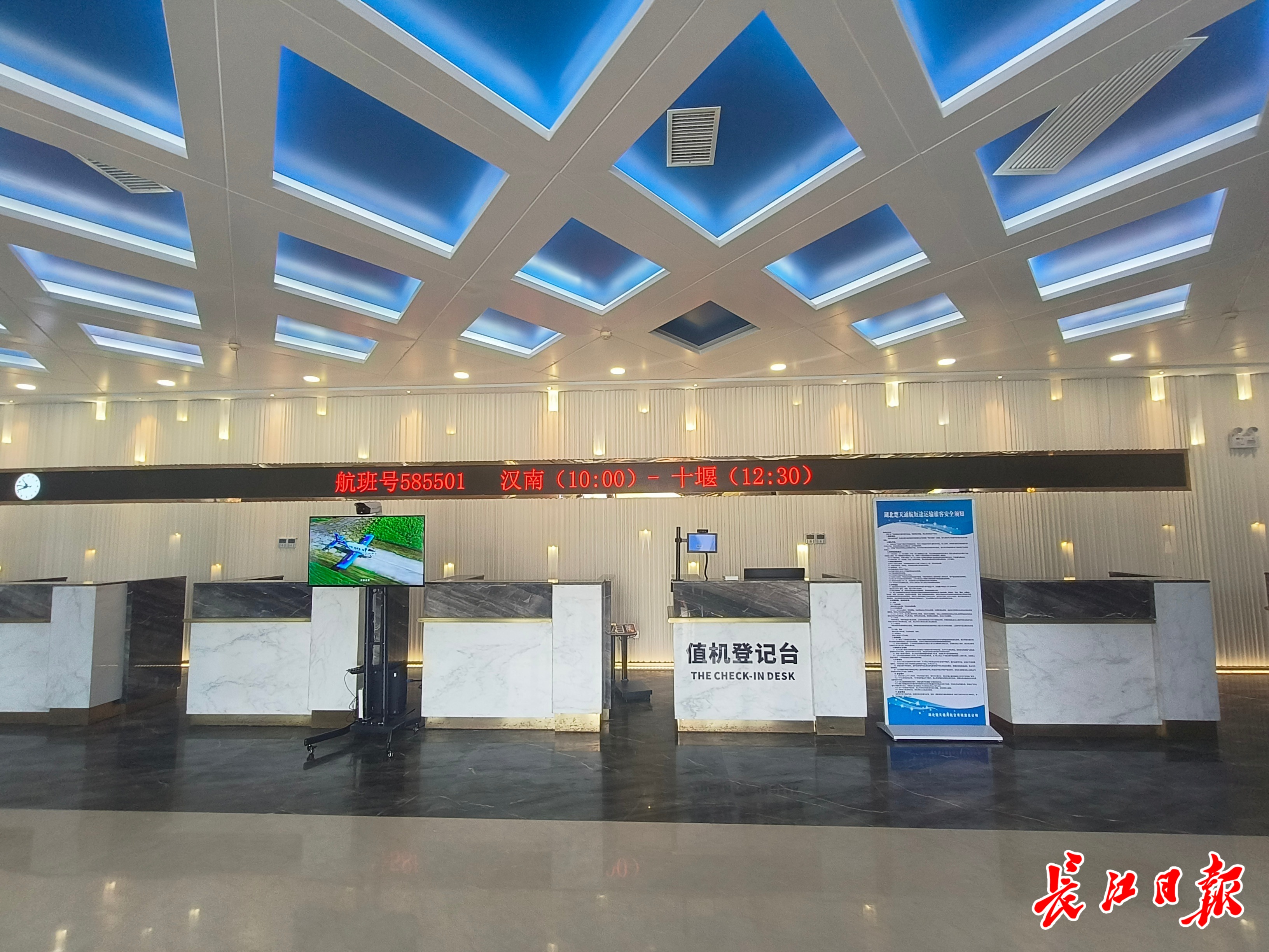 汉南机场值机登记台已经做好全面准备。 记者徐丹 摄