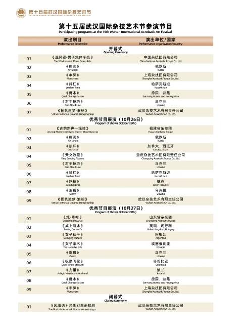 武汉国际杂技艺术节对参演节目历来都有严格要求,必须有难度、有创新,通常会选取国内外最新的、技巧和艺术表现俱佳的优秀杂技节目参加演出。