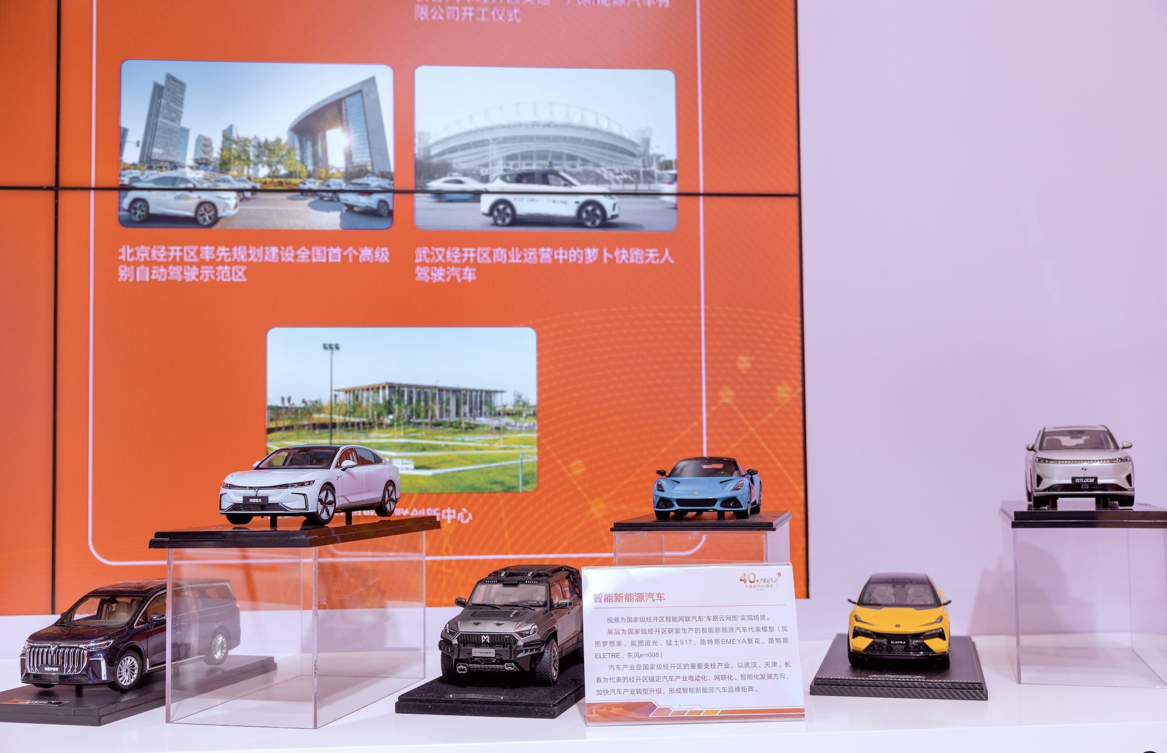 现场讲解员介绍,汽车产业是国家级经开区的重要支柱产业,以武汉、天津、长春为代表的经开区锚定汽车产业电动化、网联化、智能化发展方向,加快汽车产业转型升级,形成智能新能源汽车品牌矩阵。