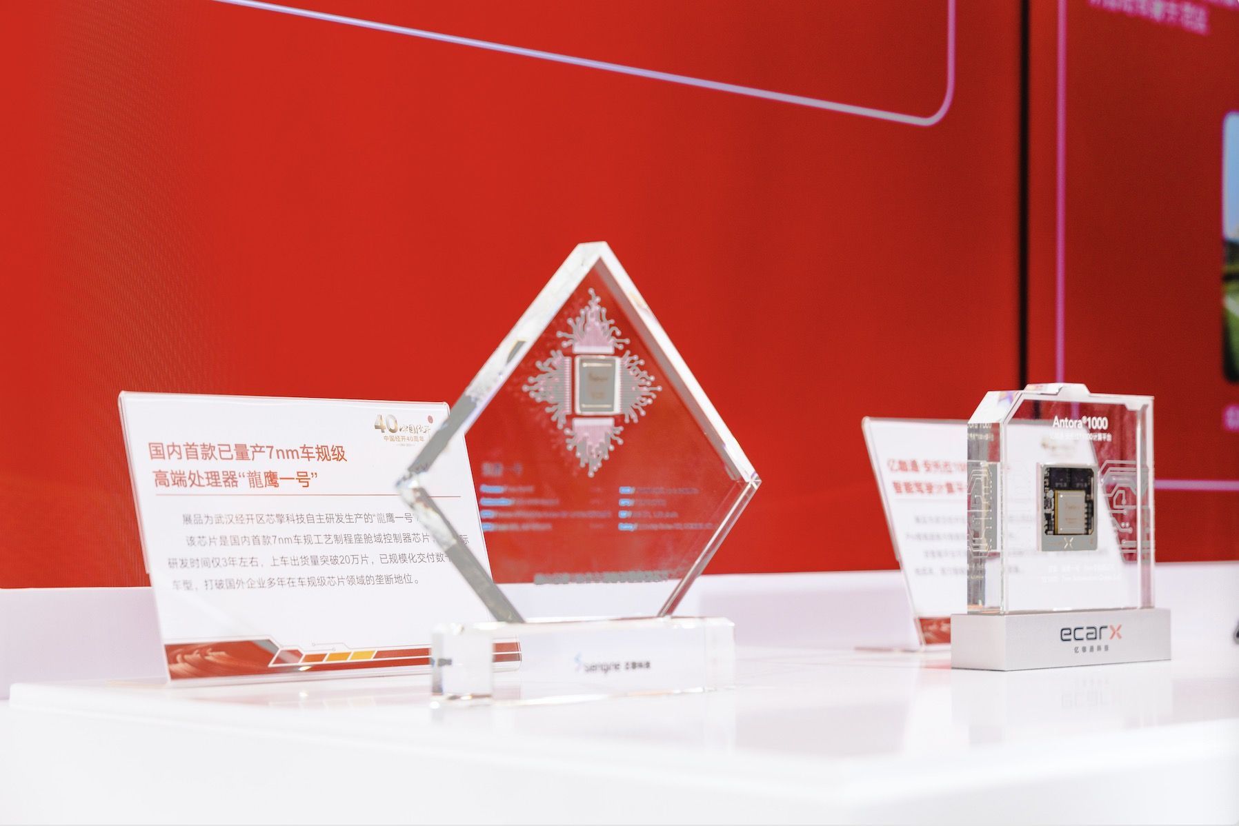 除了整车,武汉企业自研的汽车“心脏”和“大脑”——国内首款已量产7nm车规级高端处理器“龍鹰一号”、智新半导体自主研发生产的3款车规级IGBT模块、亿咖通·安托拉1000Pro智能驾驶计算平台等也在展览上亮相。