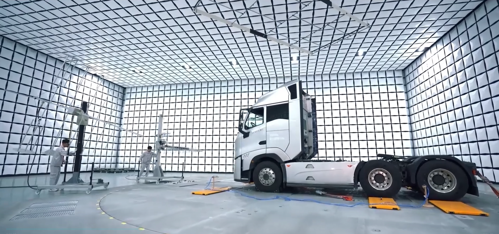 中汽研汽车检验中心(武汉)有限公司内,电磁兼容试验室正在检测车辆在电磁环境下的性能。通讯员提供
