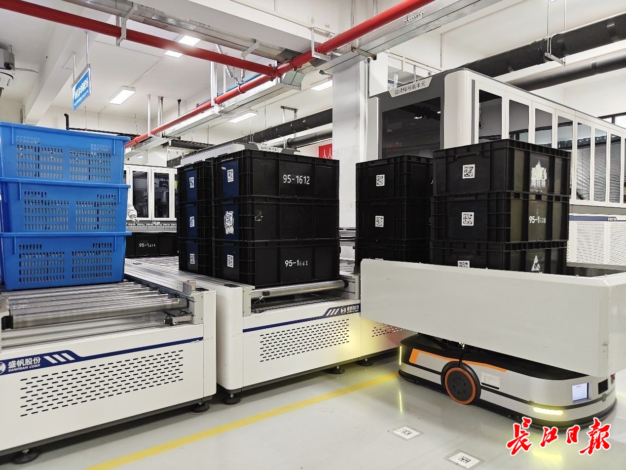 “生产智能、绿色的产品,离不开智能工厂的建设。”穿上黄色的防静电工服,参观者跟随着肖飞的脚步走进车间一线,只见机器人手臂正在产线上腾转,AGV小车(自动引导车)承载着零配件来回穿梭,一块块屏幕上实时显示着各项生产数据。一眼看去,车间里高效且整洁有序。