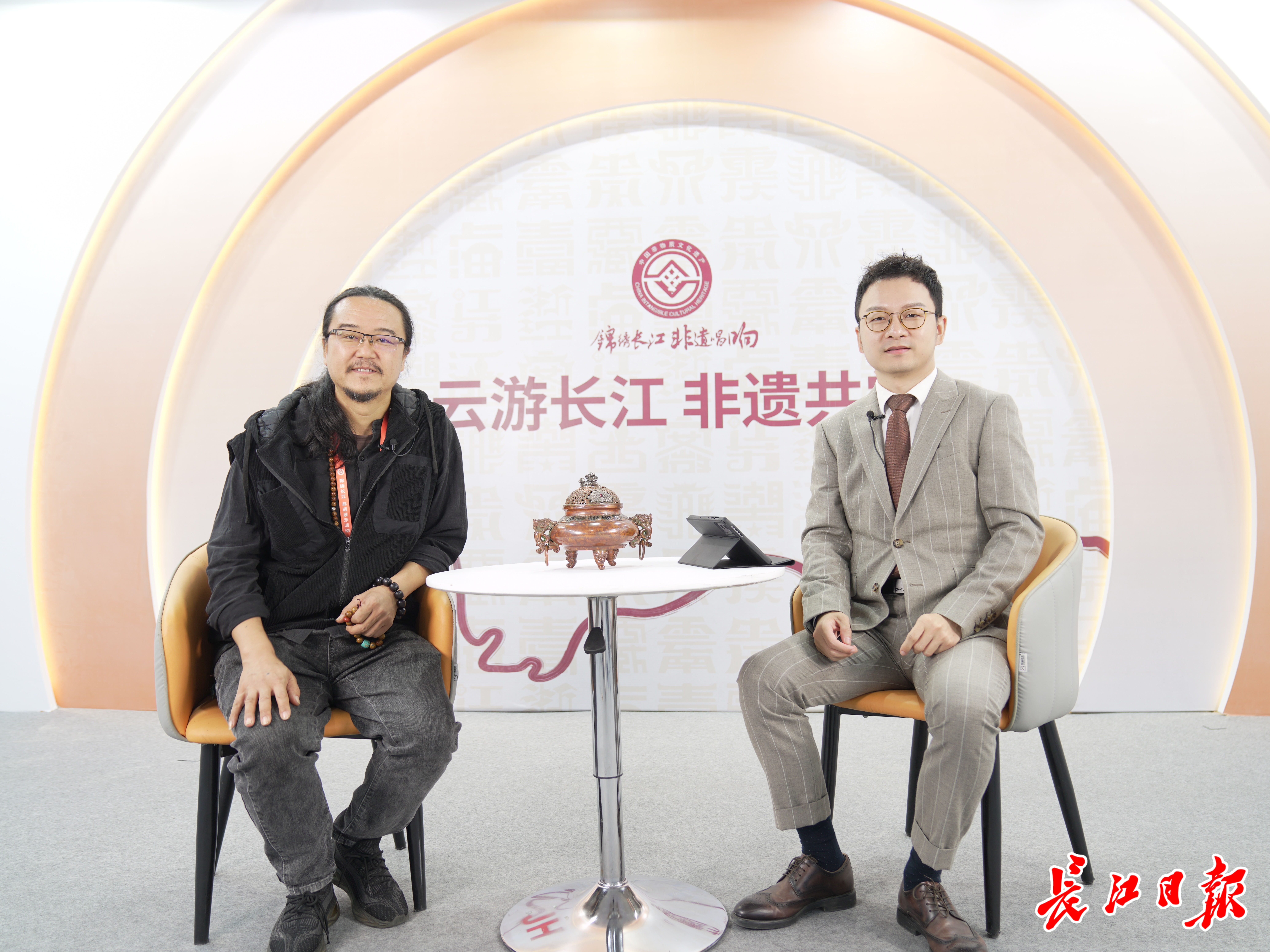 长江日报大武汉客户端10月27日讯(记者黄丽娟)10月27日,国家级非物质文化遗产项目“斑铜制作技艺”代表性传承人李碧做客长江日报“云游长江 非遗共赏”直播间时,带来一件价值6万元的艺术品——宝相熏炉。他透露,这件作品花了他4个月的时间打造,融合了三个国家级非遗技艺:斑铜制作技艺、银器锻制技艺和乌铜走银技艺。