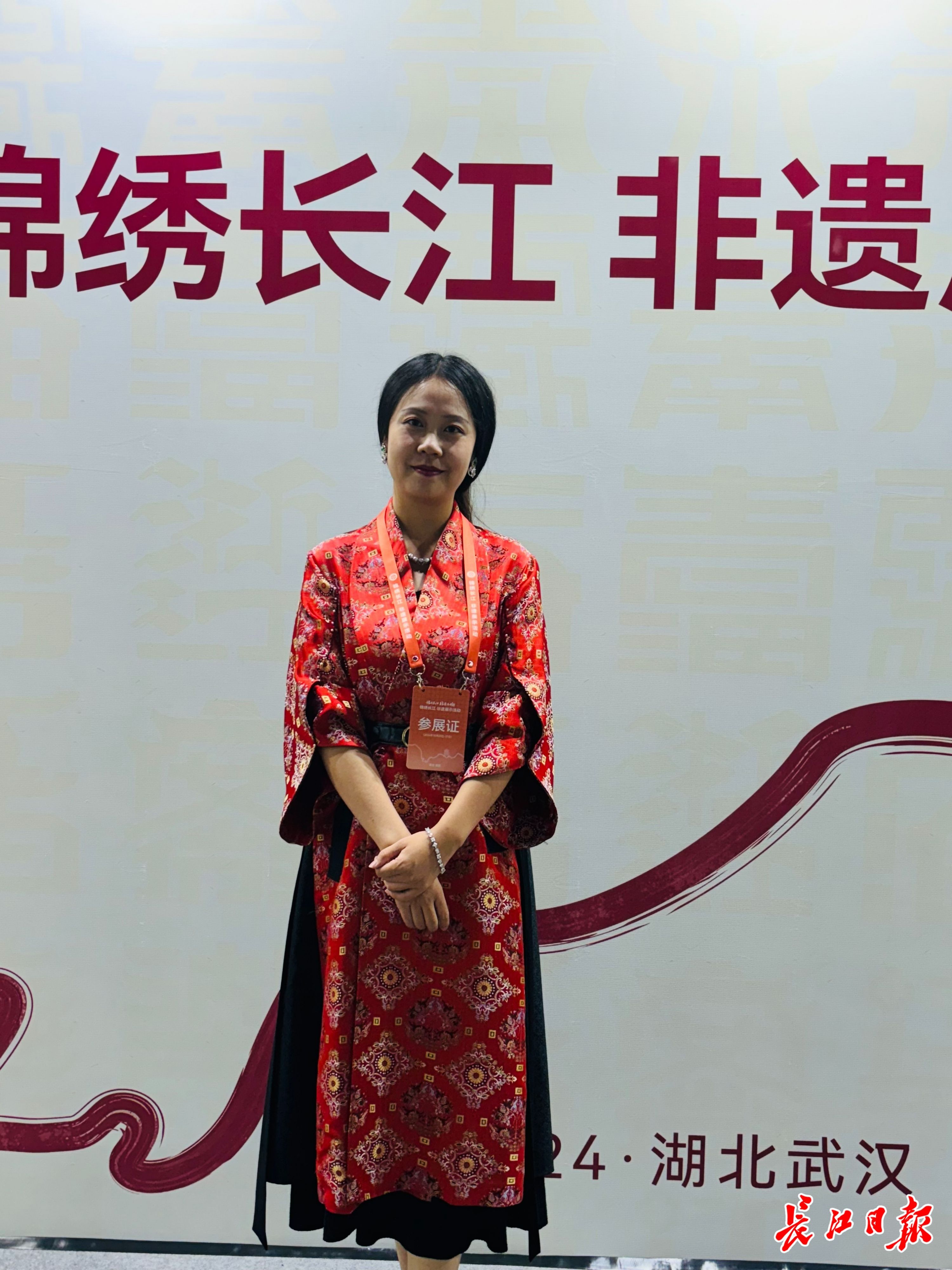 在展会现场,年轻的非遗传承人的面孔不时闪现。他们将现代元素融入非遗设计,让非遗变得“潮”起来,更贴近现代生活。四川蜀锦传承人、90后陈星羽将一套价值2万元的蜀锦裙装穿在身上,在阳光照射下显得流光溢彩,引来众多观众拍照。“这件衣服要经过几十道工序制作,而且从设计上更偏时尚感。”陈星羽介绍,现在很多年轻人都非常喜欢蜀锦,他们接到的蜀锦新中式服装订单已经排到2个月后。